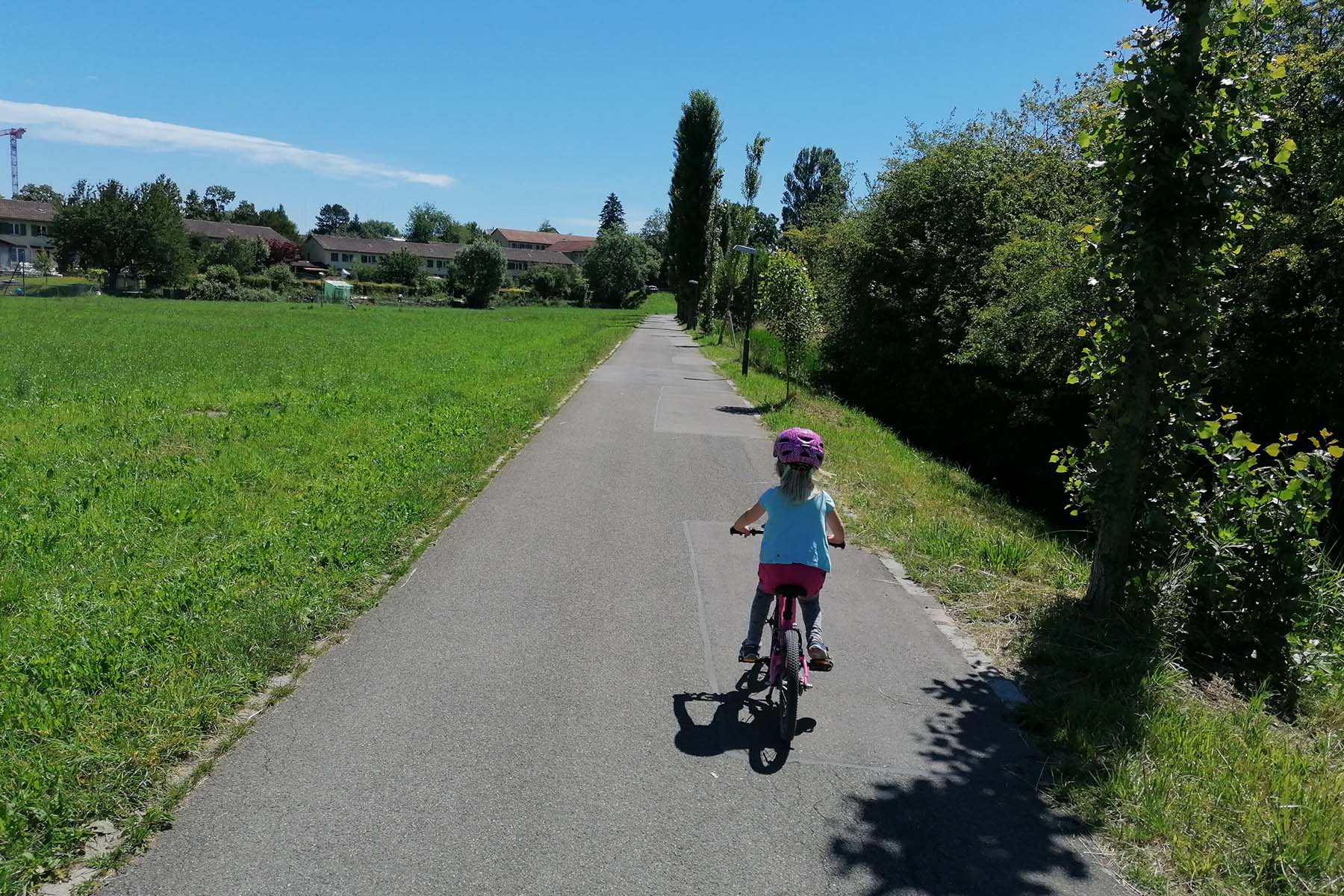 Die Tagesform von Kindern kann stark variieren. Was an einem Tag problemlos geht, klappt am nächsten nicht im Ansatz. Deshalb ist es sinnvoll, sich die Möglichkeit offen zu lassen, die geplante Strecke abzukürzen oder gegebenenfalls auf den ÖV umzusteigen. Letzteres ist auch eine gute Option, um wieder nach Hause zu kommen. Als Veloticket kann ein Halbtax-Ticket für kurze Strecken gelöst werden. Für längere Zugfahrten gibt es die Velotageskarte für vierzehn Franken. Mehr dazu hier.