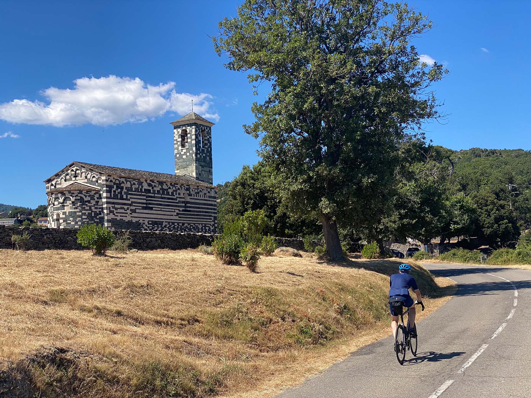 Auf dem Weg passieren wir die romanische Kirche San Michele de Murato. Der aus grünen Serpentin- und weissen Kalksteinblöcken bänder- und schachbrettartig gebaute Sakralbau war für den Romancier Prosper Mérimée die eleganteste Kirche der Insel.