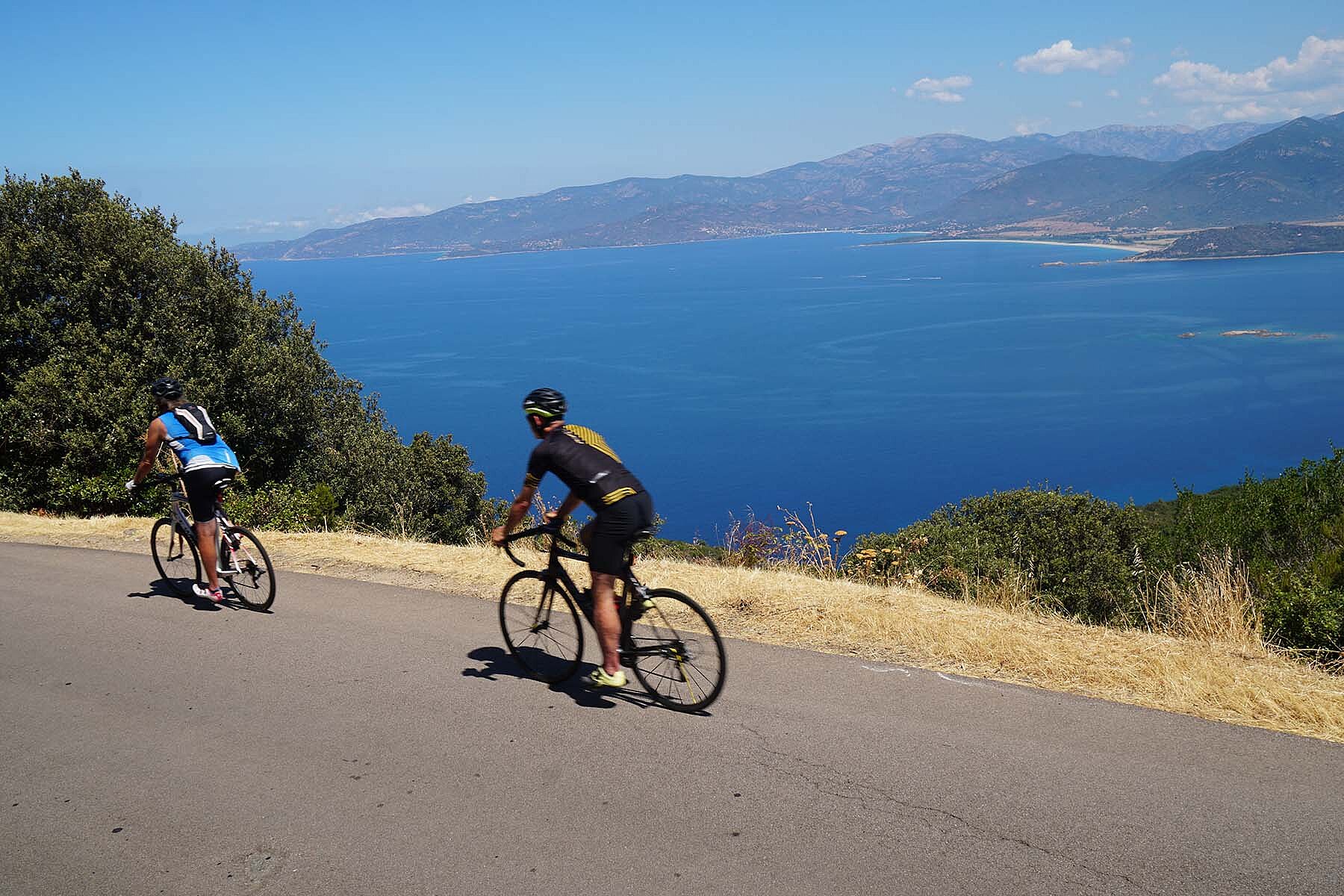Entlang der wilden Westküste folgen spektakuläre Aufstiege und Aussichten aufs Meer. Unterwegs geniessen wir die würzige Luft, laben uns immer wieder an den Leckereien lokaler Bäckereien oder an selbstgemachten Glacés. Schon dies hebt das Niveau gegenüber der Nachbarsinsel Sardinien. Das kulinarische Angebot ist vielfältiger, die Preise oft auch hoch – Inselpreise eben.