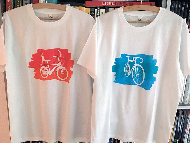 Darum hat der Zürcher eine eigene Velo-T-Shirt-Kollektion mit Namen «Cool-Bikes» entworfen. Weitere Motive sind ebenfalls im Angebot. «Jedes T-Shirt ist ein Unikat mit eigenem Farbverlauf und wird in Altstetten im Siebdruckverfahren hergestellt», sagt Bruno Angeli. Die Shirts würden klimaneutral gefertigt, trügen das Label der Fair-Wear-Foundation und bestünden zu 100 Prozent aus Bio-Baumwolle.