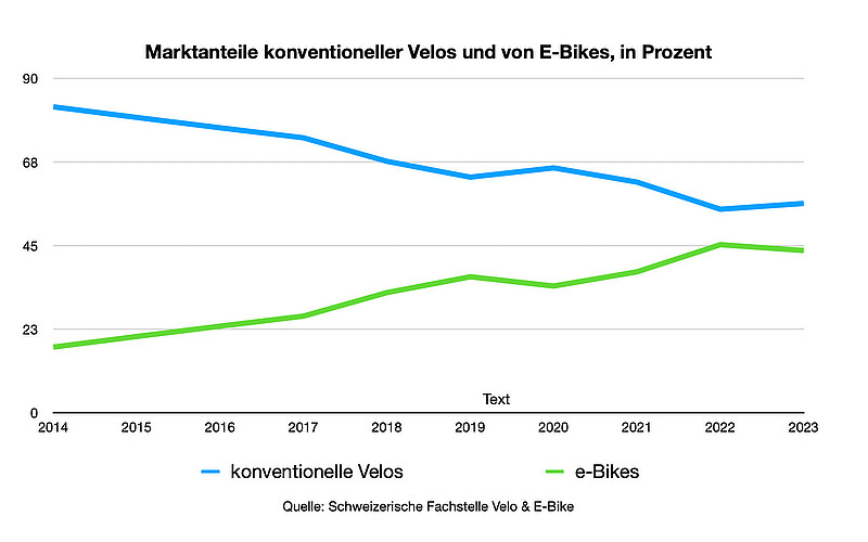 Entgegen dem Gesamttrend konnten die schnellen E-Bikes mit 26'559 verkauften Einheiten ein Plus von 16,6 Prozent verzeichnen. Dagegen verzeichneten Freizeit- und Alltagsvelos mit kompletter Alltagsausstattung mit rund einem Drittel einen deutlich stärkeren Rückgang.