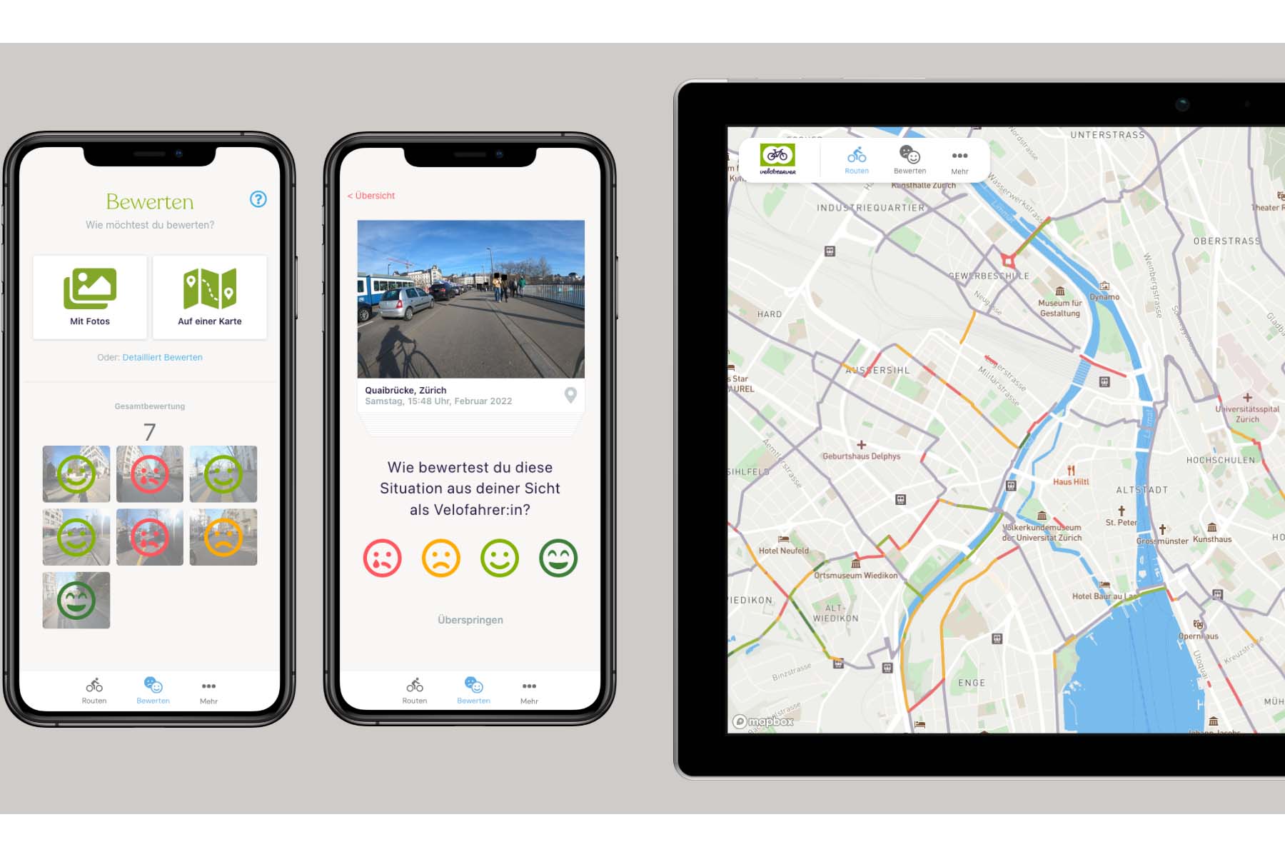 Konkret bewertet werden die «Sicherheit», «Konfliktfreiheit» und «Attraktivität» der Routen anhand von 1400 Streckenbildern auf 130 Kilometern oder – wenn man eine Strecke sehr gut kennt – direkt auf der interaktiven Karte. Jede Bewertung fliesst direkt in die visuellen Darstellungen mit ein.