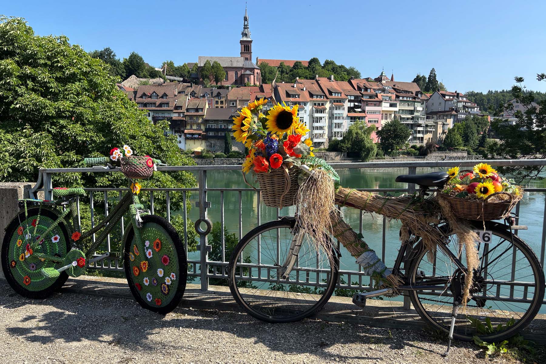 Velos schmücken die Stadt Laufenburg auf beiden Seiten des Rheins noch bis Mitte September. (Foto: ZVG)