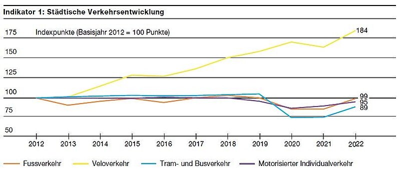 «Das Ziel, den Anteil des ÖV, des Fuss- und des Veloverkehrs am Modalsplit zu erhöhen, darf deshalb weiterhin als erreichbar eingestuft werden und steht auch künftig im Zentrum der städtischen Mobilitäts- und Verkehrspolitik», bilanziert Tiefbauvorsteherin Simone Brander.