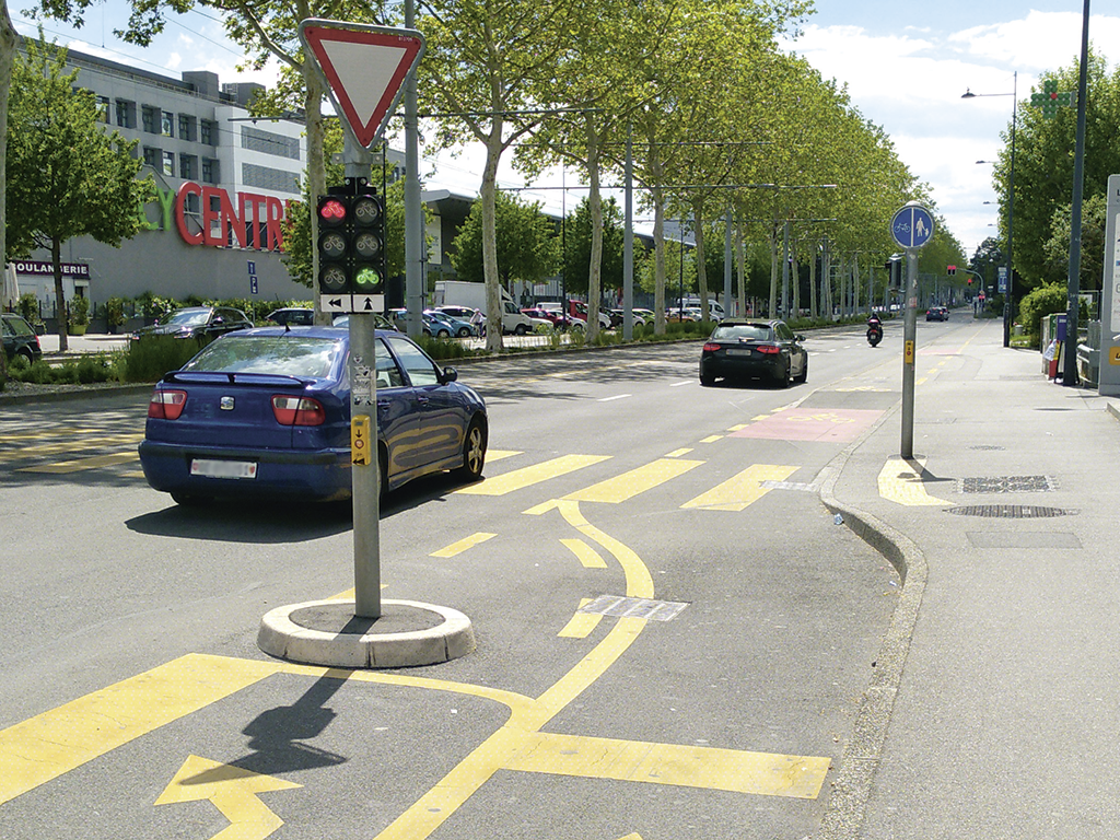 Gute Beispiele wie diese separate Abbiegespur für Velofahrende am Eigerplatz in Bern sind noch viel zu selten.Kantone zur Planung verpflichten