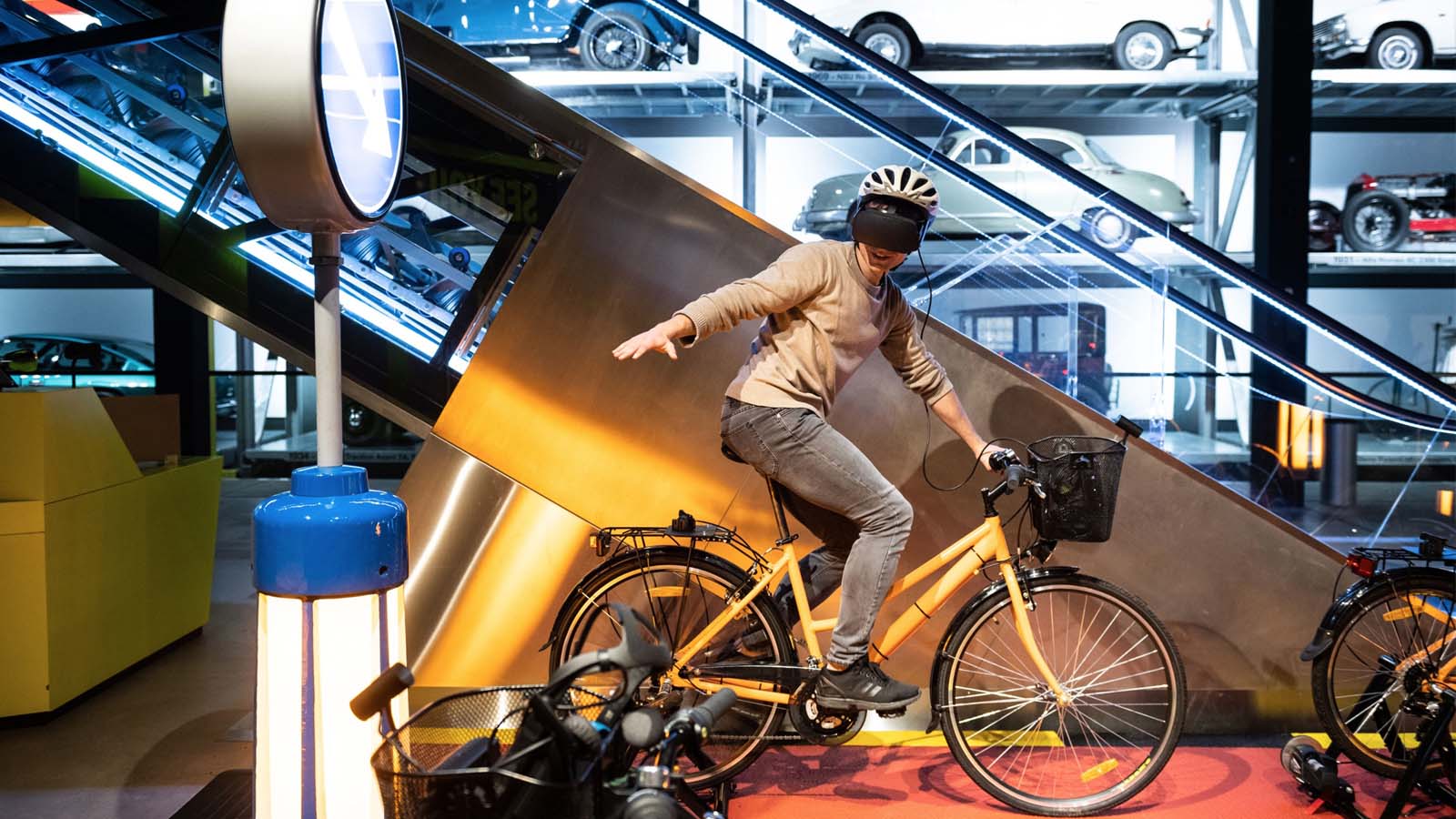 Auf einem der vier Velos sitzend und ausgestattet mit Virtual-Reality-Brillen erleben die Besucher und Besucherinnen typische Verkehrssituationen mit Fokus auf potentielle Gefahren. Durch das digitale Lernen sollen Verkehrssicherheit und vorausschauendes Fahren optimal und risikofrei geschult werden.