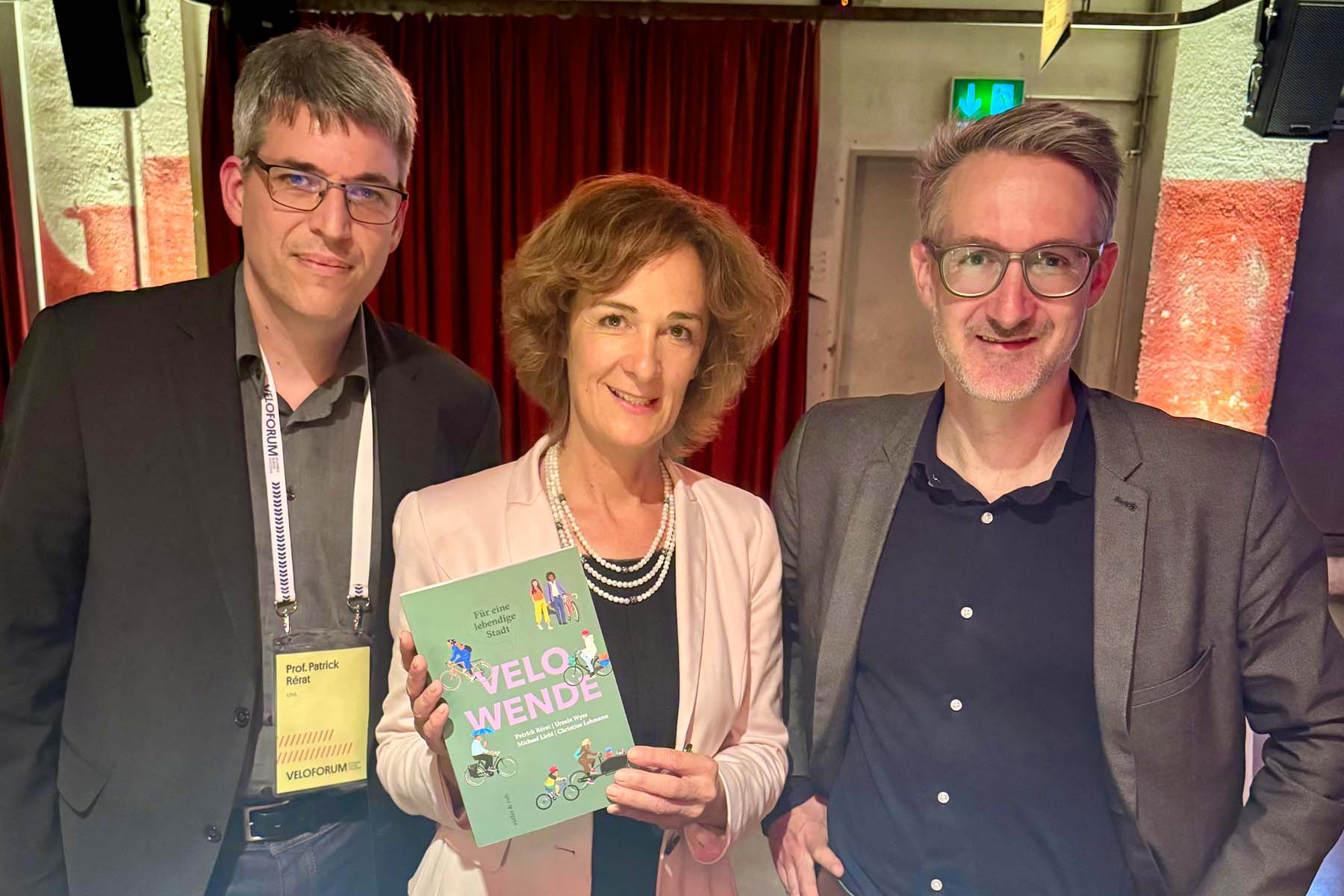 Haben ein Buch für die Verkehrswende geschrieben: Patrick Rérat, Ursula Wyss und Michael Liebi (v.l.n.r. Nicht im Bild: Mitautorin Christine Lehmann). (Foto: Pete Mijnssen)