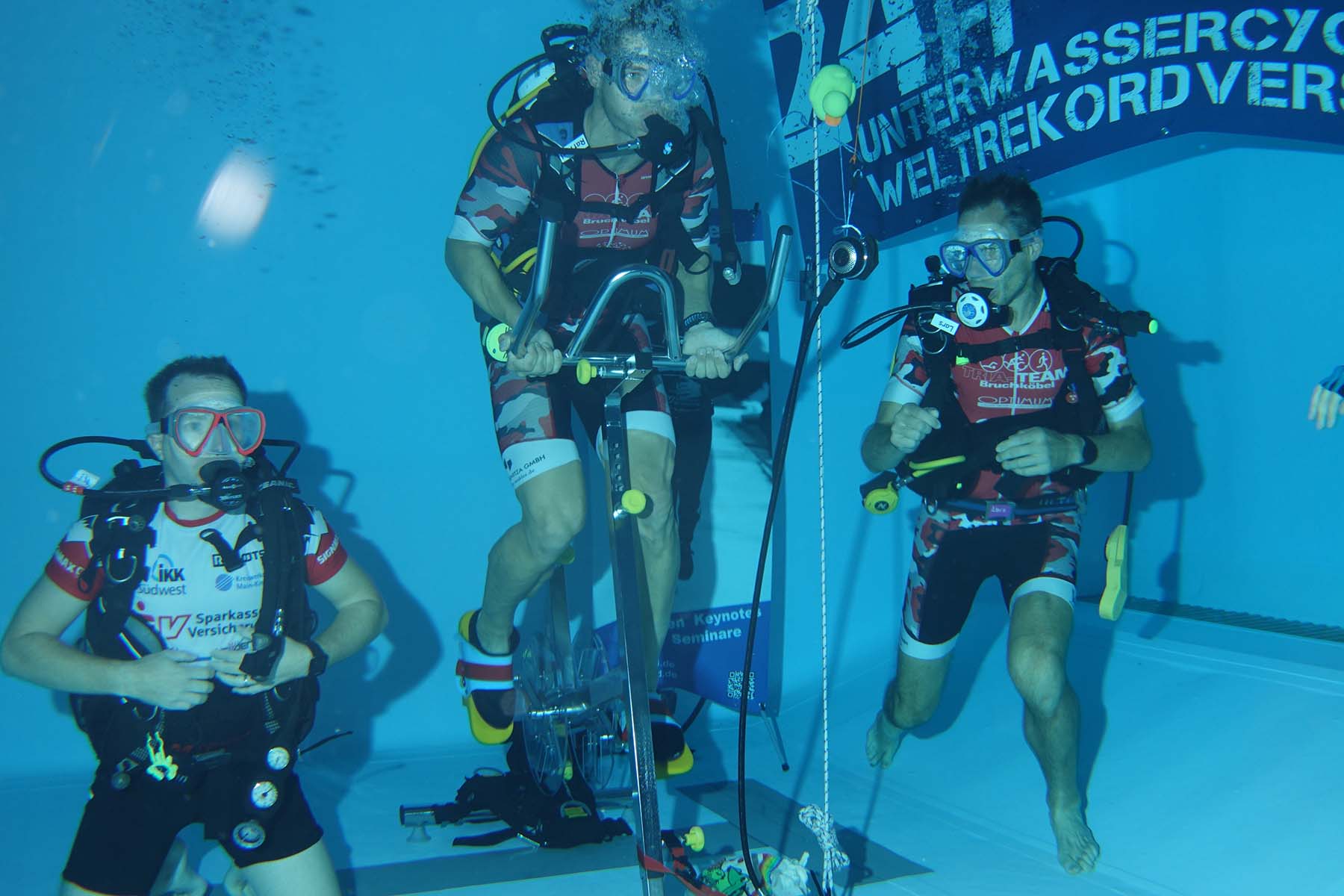 Bei Unterwasser-Cycling sitzen die Teilnehmenden ausgerüstet mit Taucherausrüstung auf einem Ergometer. Die getretenen Pedalumdrehungen werden in ein Entfernungsäquivalent umrechnet. Nach diesem wird der Rekordversuch dann bewertet.