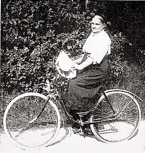 Die frühe Radfahrerin hält schriftlich fest, was sie auf ihrem ersten Ausflug mit dem Stahlpferd erlebt: «Eine Frau auf dem Rade! Grinsend standen sie da in Stadt und Land, sahen mir nach, und höhnische Redensarten, gemeine Schimpfworte, wenn nichts Schlimmeres, trafen mein Ohr und liessen mich trotz meines Alters vor Scham erröten. Die Kutscher schlugen mit der Peitsche nach mir und trafen leider oft genug, und die Kinder hatten, von den Grossen angestiftet, ganze Batterien von Schmutzklumpen angehäuft, um mich damit möglichst gründlich bombardieren zu können. Meine Verwandten sagten mir Fehde an, wenn ich das Radeln nicht liesse. Ich verzichtete auf den Verkehr mit ihnen und blieb meinem Rade treu.»
