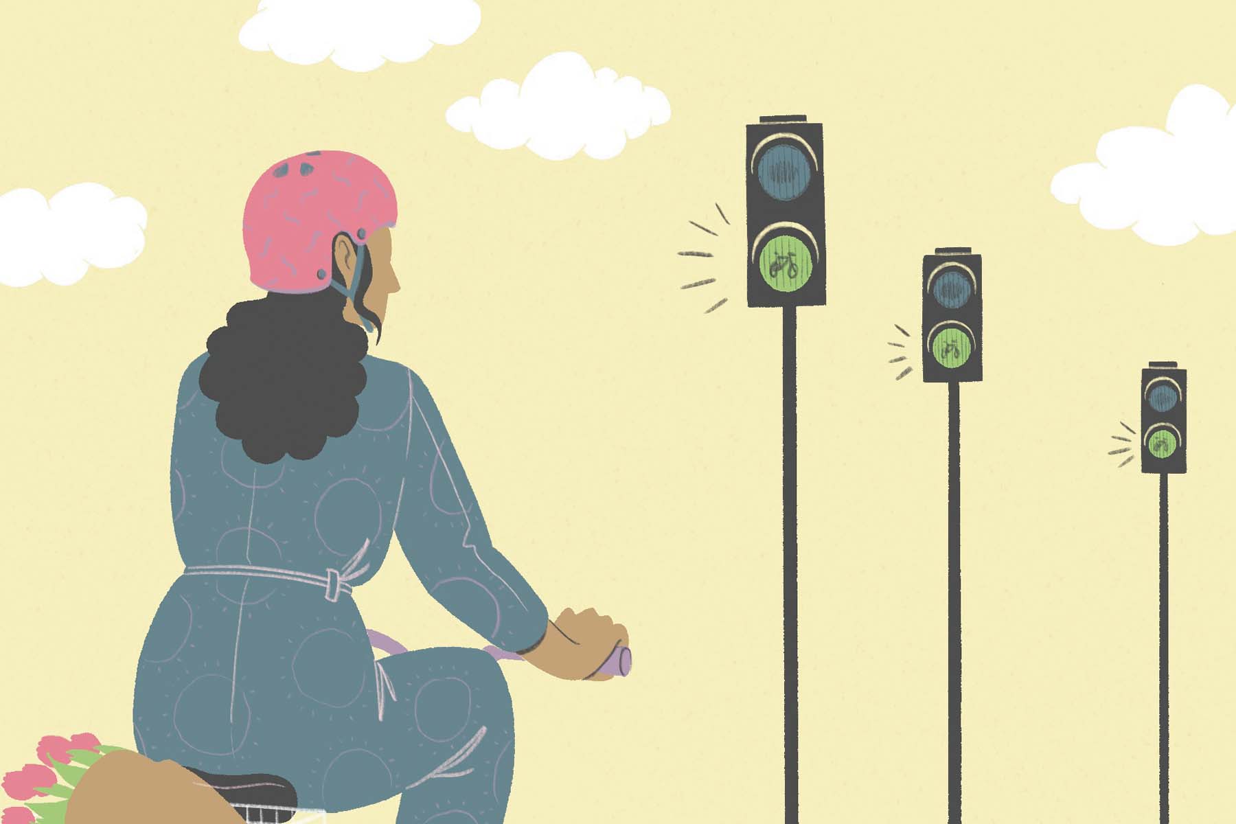 Ist die grüne Welle auf eine gemütliche Fahrt ausgerichtet, dient sie allen. (Illustration: Lena Waldispühl)