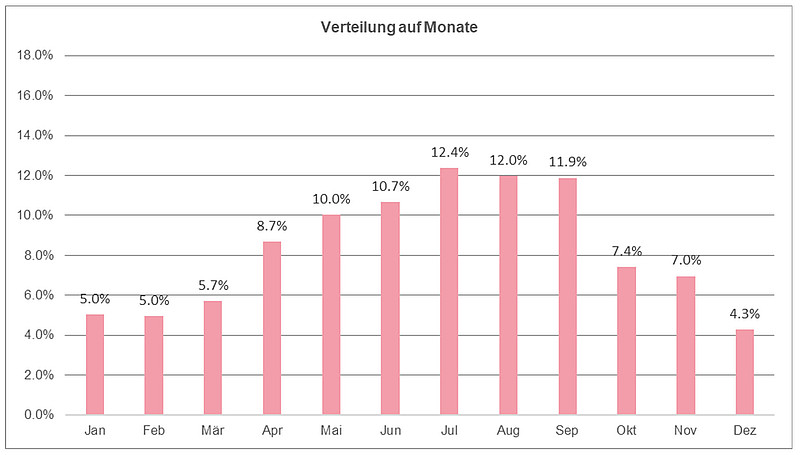Auf den Veloland-Schweiz-Routen sind im Sommer deutlich mehr Menschen unterwegs als im Winter. (Grafik: ZVG)