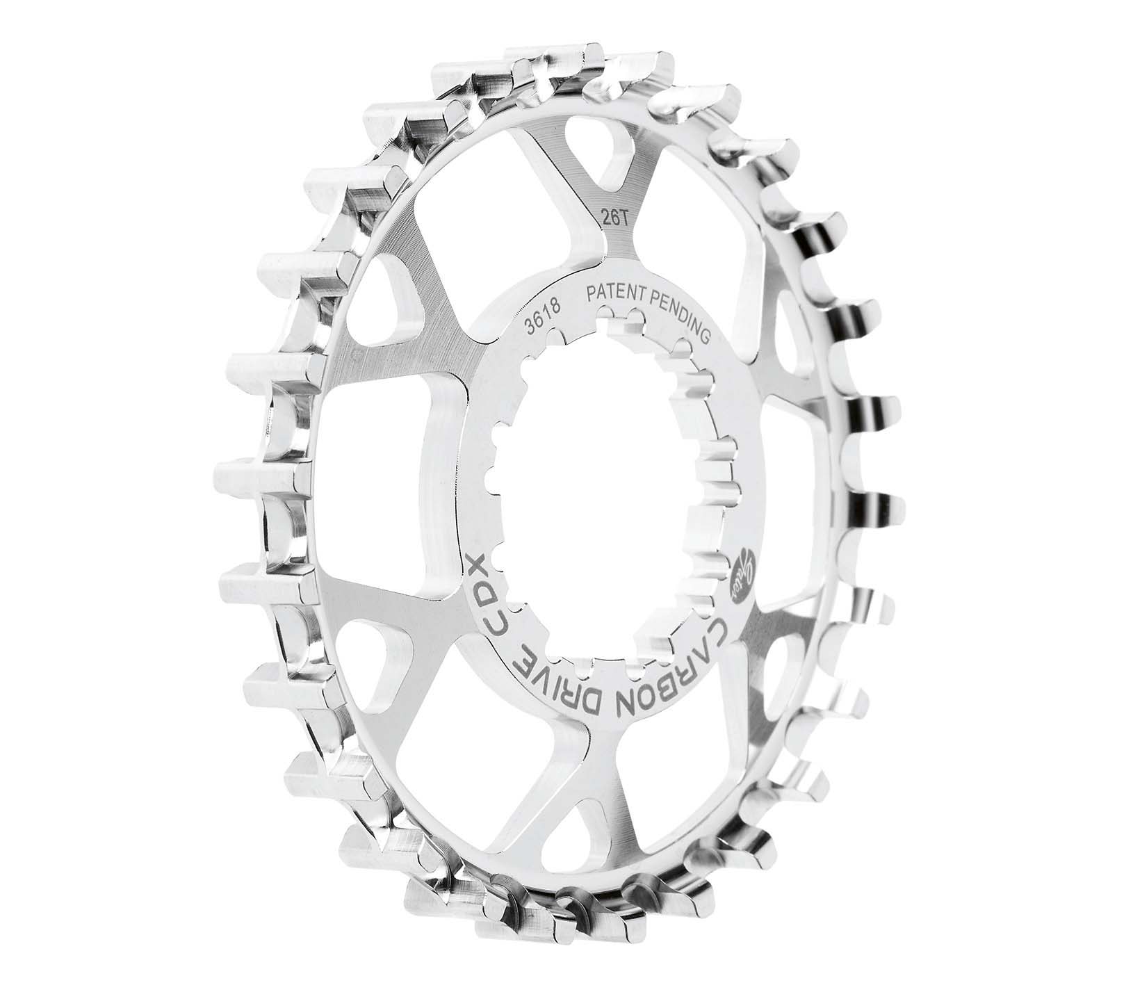 Carbonfaserverstärkter Kunststoffriemen, 14 mm breit, Teilung 7,8 mm, Zähnetiefe 3,5 mm, drei Standardlängen sowie Riemen nach Mass erhältlich. Shimano-, Enviolo- und Rohloff-Nabenschaltungen, Riemenscheiben aus Edelstahl und Aluminium.