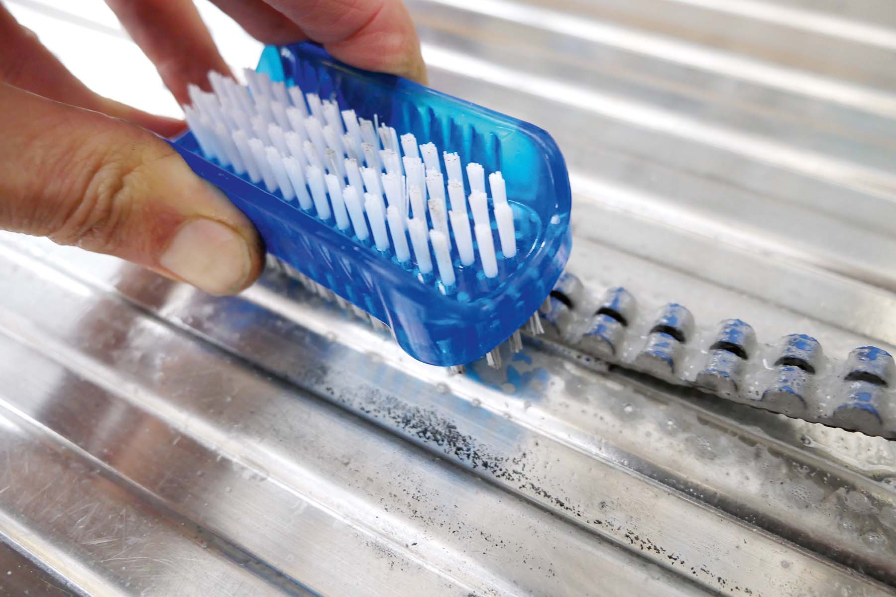 Beim Gates-Riemen ist es dabei besonders wichtig, dass die Mittelrille gut ausgebürstet wird. Von Verschmutzungen befreit, steigt die Lebensdauer des Riemens, die Neigung zu Geräuschentwicklung sinkt.
