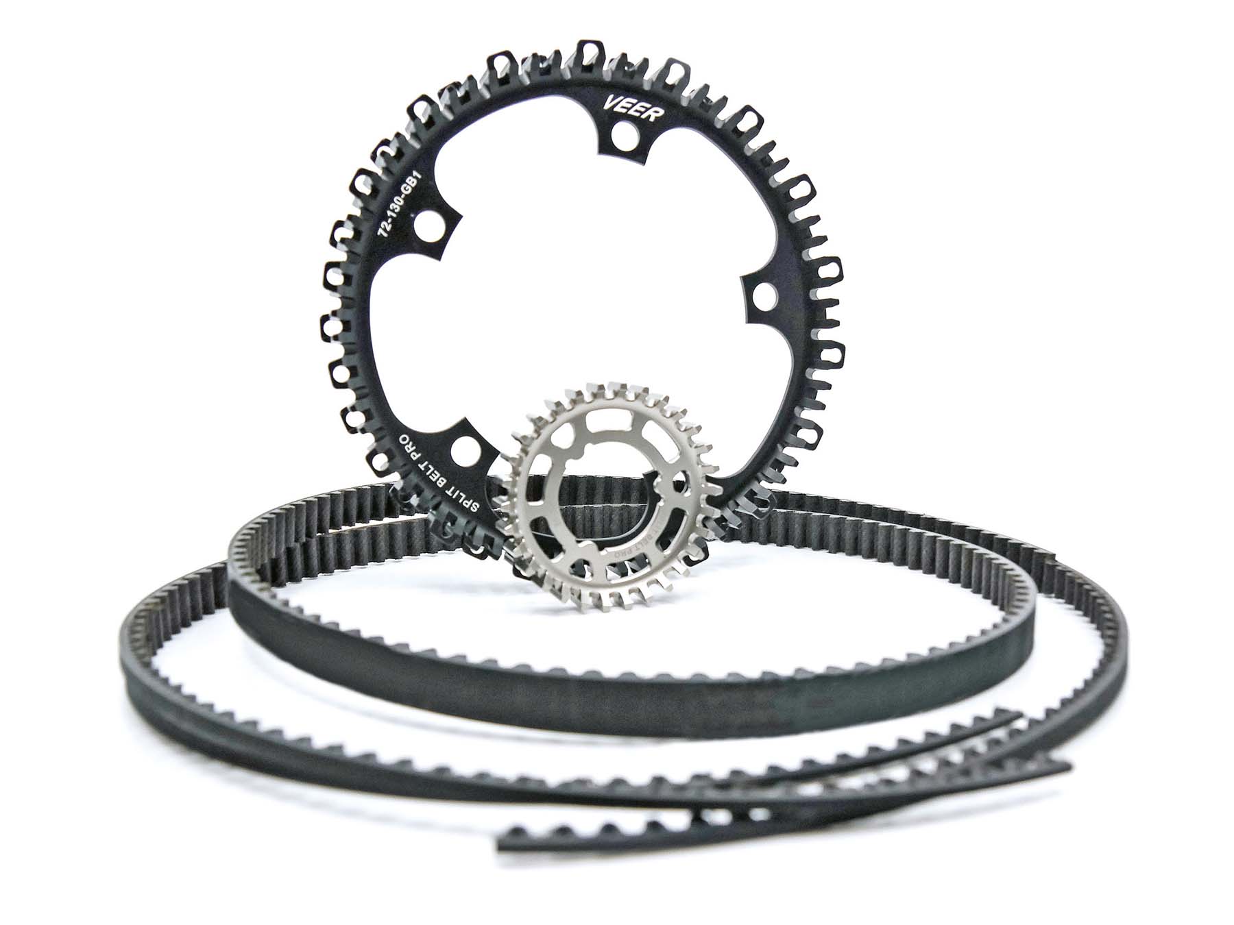 Beim Veer «Split Belt», der wie eine Kette am Velo verschlossen werden kann, entfällt die Notwendigkeit des Hinterbaus, der sich öffnen lässt, wodurch er bei gewissen Velos nachgerüstet werden kann.