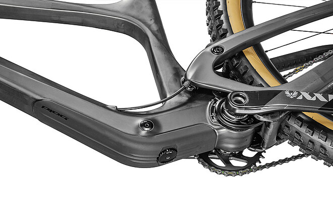Wie bei Bold Cycles nicht anders zu erwarten, sind der Rahmen und der Hinterbau aus Carbon gefertigt, und dank der «IST VP»-Kinematik verschwindet das Federbein wie gewohnt im Rahmen. Wie gewohnt? Nicht ganz, denn neu steckt das Federbein nicht mehr im Sitzrohr, sondern im Unterrohr gleich vor dem Tretlager und wird von zwei Hebeln angelenkt, was einen virtuellen Drehpunkt ergibt. Die neue Konstruktion ermöglicht eine solide Abstützung des Federbeins im Rahmen, verkürzte und damit steifere Umlenkhebel und einen nochmals tieferen Schwerpunkt. Zudem kommen sich so Federbein und Variostützen nicht in die Quere. Auch auf eine saubere Integration der Schaltzüge und Bremsleitungen wurde geachtet, und die Geometrie wurde behutsam modernisiert.