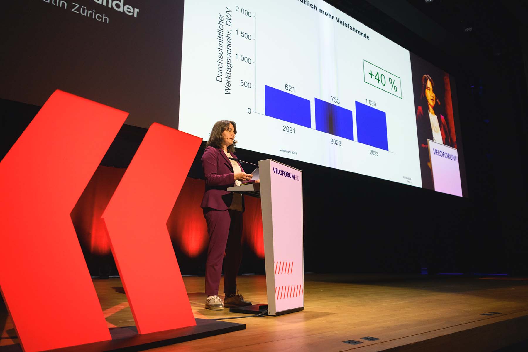 Die Zürcher Tiefbauamts-Vorsteherin Simone Brander vertraute in ihrem Statement voll und ganz auf die teilweise umgesetzten und geplanten Vorzugsrouten. Diese sind für sie zentral für die Veloförderung, trotz rückläufigem Veloverkehr in Zürich. Zugleich widerlegte sie anhand von Studien das Vorurteil, dass die Velovorzugsrouten vor allem den schnellen E-Bikes dienen: «Unsere Untersuchungen zeigen, dass die Velovorzugsrouten keine Raserstrecken sind».