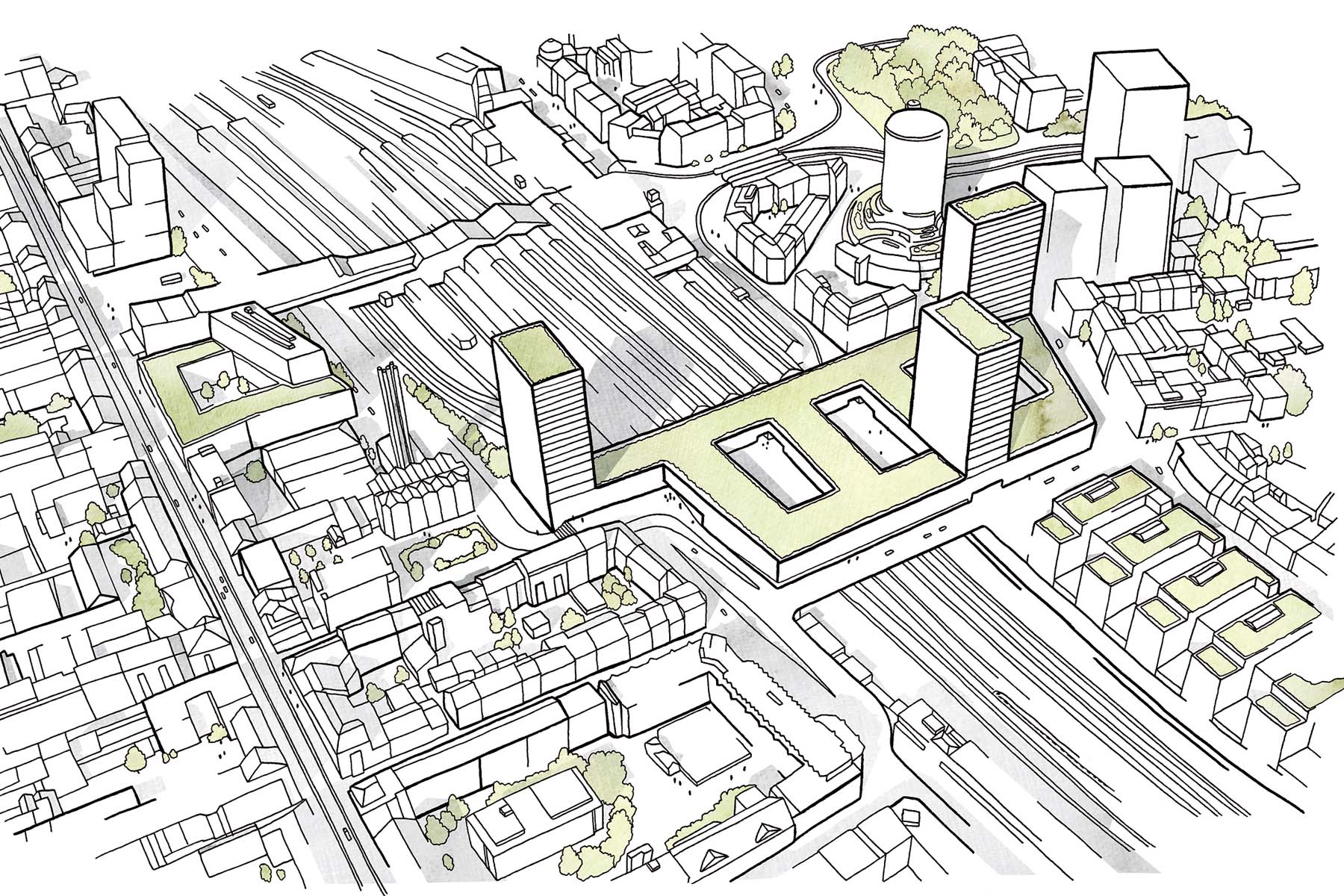 Geplant seien Flächen für Wohnen, Dienstleistung und Gastronomie sowie «eine städtebaulich geforderte Langsamverkehrs-Verbindung zwischen der Innenstadt und dem Gundeldingen-Quartier». Die Bauherren halten in der Ausschreibung für das Richtprojekt weiter fest: «Der Vernetzung und Durchquerbarkeit für den Fuss- und Veloverkehr im heutigen und künftigen stadträumlichen Kontext wird höchste Aufmerksamkeit zuteil. Die bestehende Post-Passage [...] soll attraktiver gestaltet und eine vertikale Entflechtung der Veloroute Peter-Merian-Weg und Peter-Merian-Brücke geschaffen werden.»