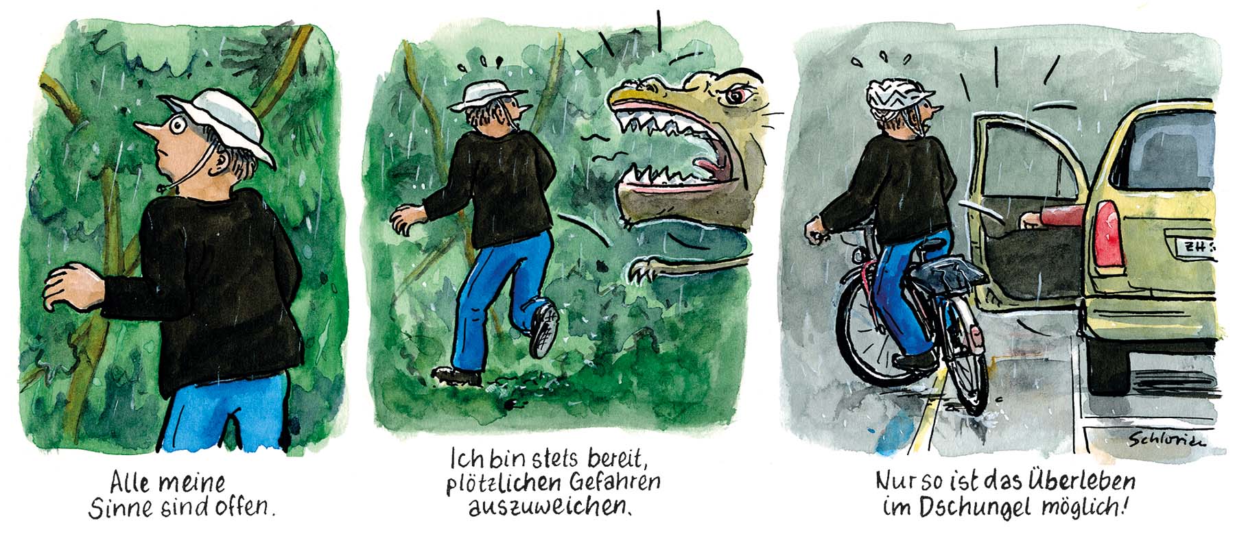 Mit dem Velo durch den Grossstadtdschungel. Der Comicstrip von Schlorian.