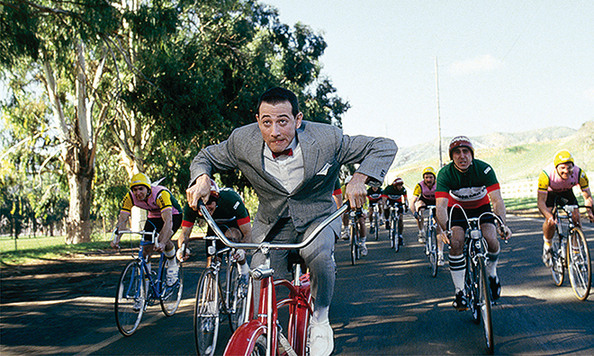 Ein roter, getunter Schwinn-Cruiser aus den späten 40er-Jahren ist Pee-Wees ganzer Stolz. Selbst in seinen Träumen ist das Velo stets präsent. Darin nimmt er auf seinem Velo an der Tour de France teil und gewinnt sie, in Anzug und Fliege, mit der Startnummer 0. Bemerkenswert sind dabei die Statisten, die seine TdF-Konkurrenten darstellen. Eingefleischten Velorennfahrern werden die Haare zu Berge stehen: Mit Aerohelmen, kniehohen Socken und Lichtanlage ausgestattet, wirken diese nicht gerade authentisch. Dies tut dem Spass aber keinen Abbruch. Pee-Wees Velo zieht Neider auf sich. Millionärssöhnchen Francis will es unbedingt haben.