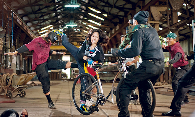 Die Hauptdarstellerin Jeeja Yanin ist vor allem unter Martial-Arts-Filmfreunden eine bekannte Grösse. «Fighting Beat 3» war zum Zeitpunkt der Dreharbeiten der dritte Film, an dem die thailändische Schauspielerin beteiligt ist. International bekannt und ein Star wurde sie durch den Streifen «Chocolate … süss und tödlich!» aus dem Jahre 2008. Jukkalan ist in «Fighting Beat 3» eine unzimperliche Kämpferin. In der ersten grossen Fightszene wird ihr Velo gleich äusserst kreativ in die Choreographie eingebaut. So ist noch nie ein Fahrrad in Szene gesetzt worden. Jukkalan bekommt später eine weitere Gelegenheit, ihre Kampfkunst unter Einsatz diverser Velokomponenten zu zeigen. Handlungsort ist die Firmenzentrale ihres Arbeitgebers. Hier fliegen sogar Kettenräder und Ritzel durch die Gegend.