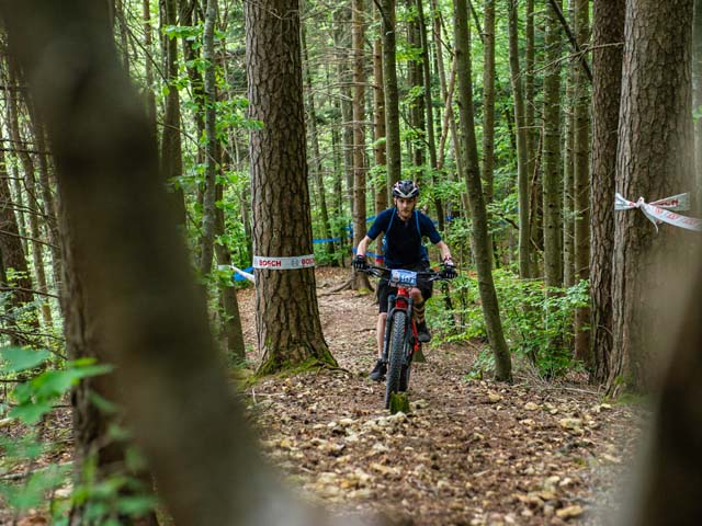Die nächste Stage – eine Wertungsprüfung bergab – kann kommen. Zu meiner Überraschung ist die Downhill-Stage moderat angelegt. Kein Vergleich zur Abfahrt vom Weissenstein. Erneut zeigt sich aber, dass die Fahrtechnik und nicht das Bike die Spreu vom Weizen trennt. Das ändert sich auch auf Stage vier nicht. Wieder geht es bergab. Wieder trennen mich viele Sekunden von meinen zwei Begleitern.