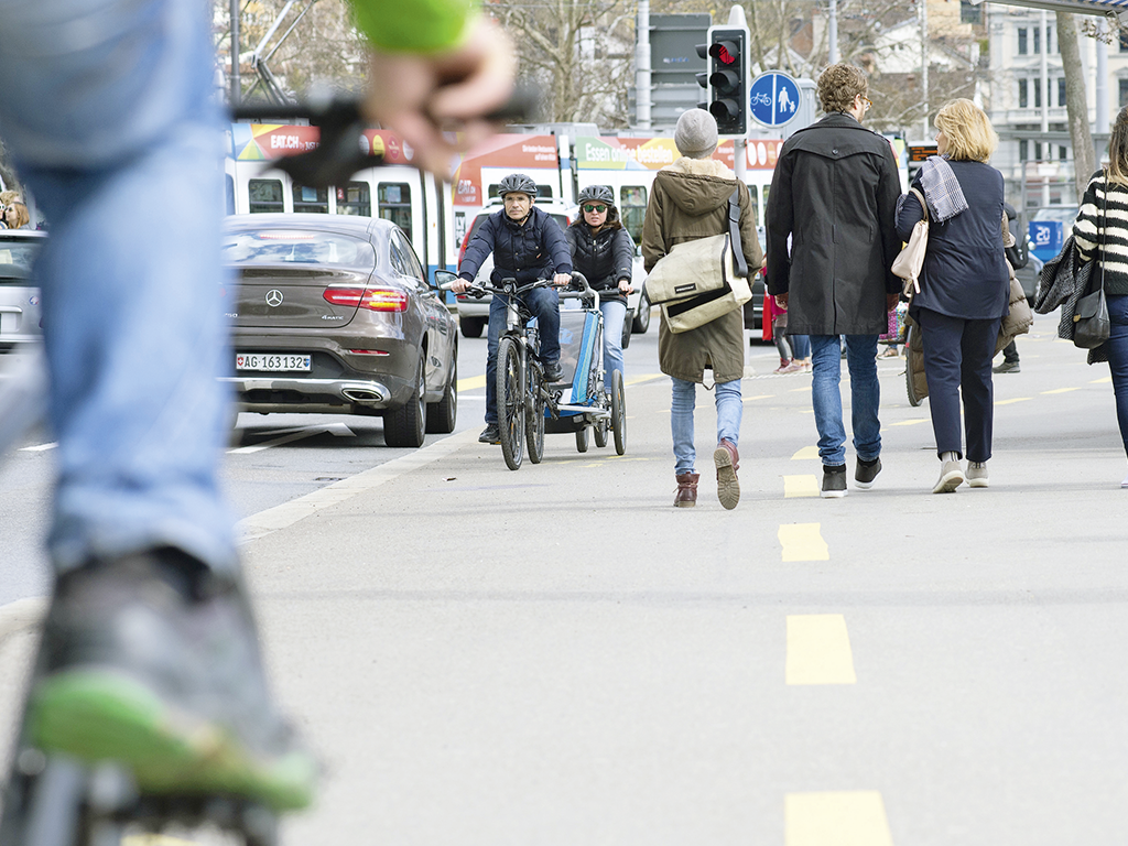 Velos und Fussgänger aufeinander loszulassen, hat in der grössten Schweizer Stadt Tradition. Wenn es auf der Strasse keinen Platz für einen Radstreifen gibt, werden Fahrräder in Zürich gerne aufs Trottoir gelotst. Eine Lösung ist das nicht.