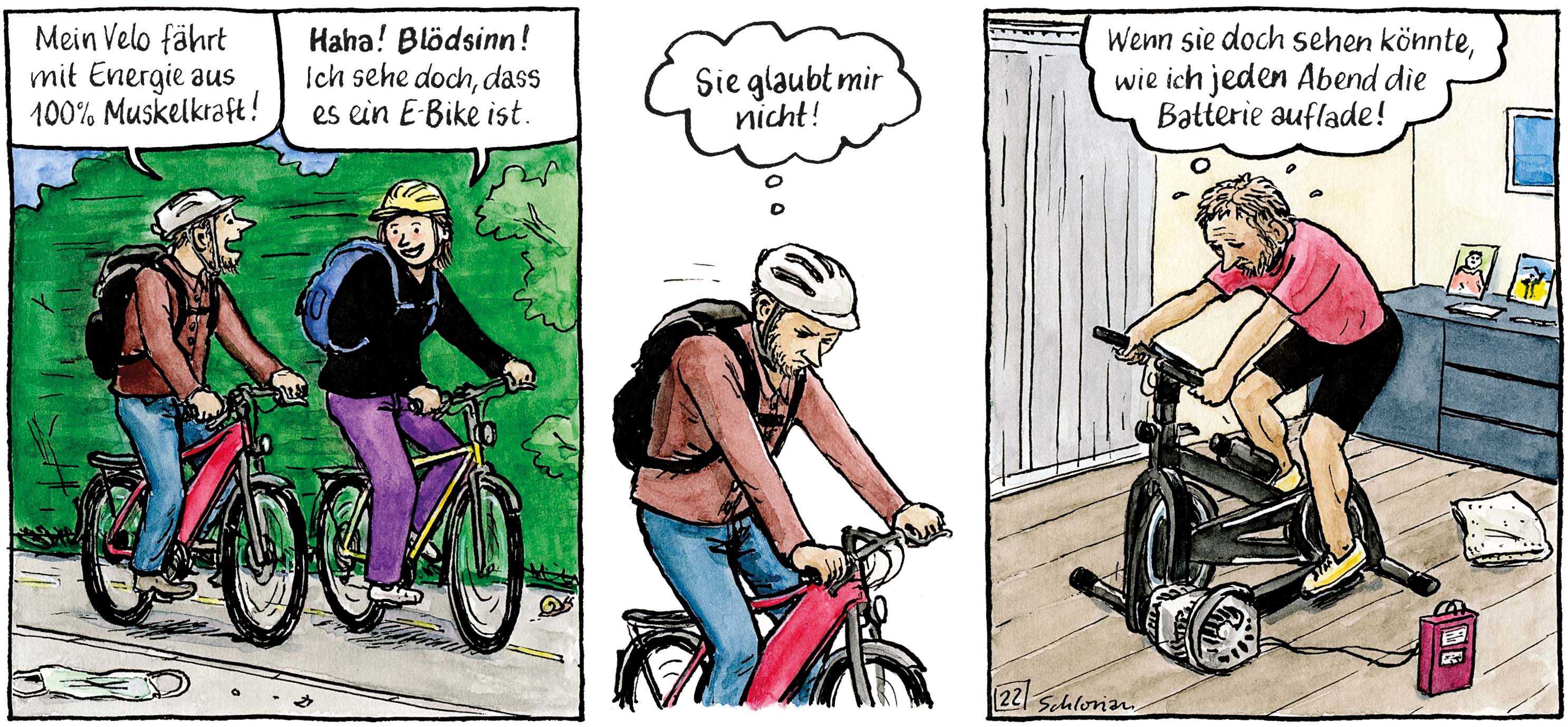 Der Velofahrende vertraut auf seine Muskelkraft.