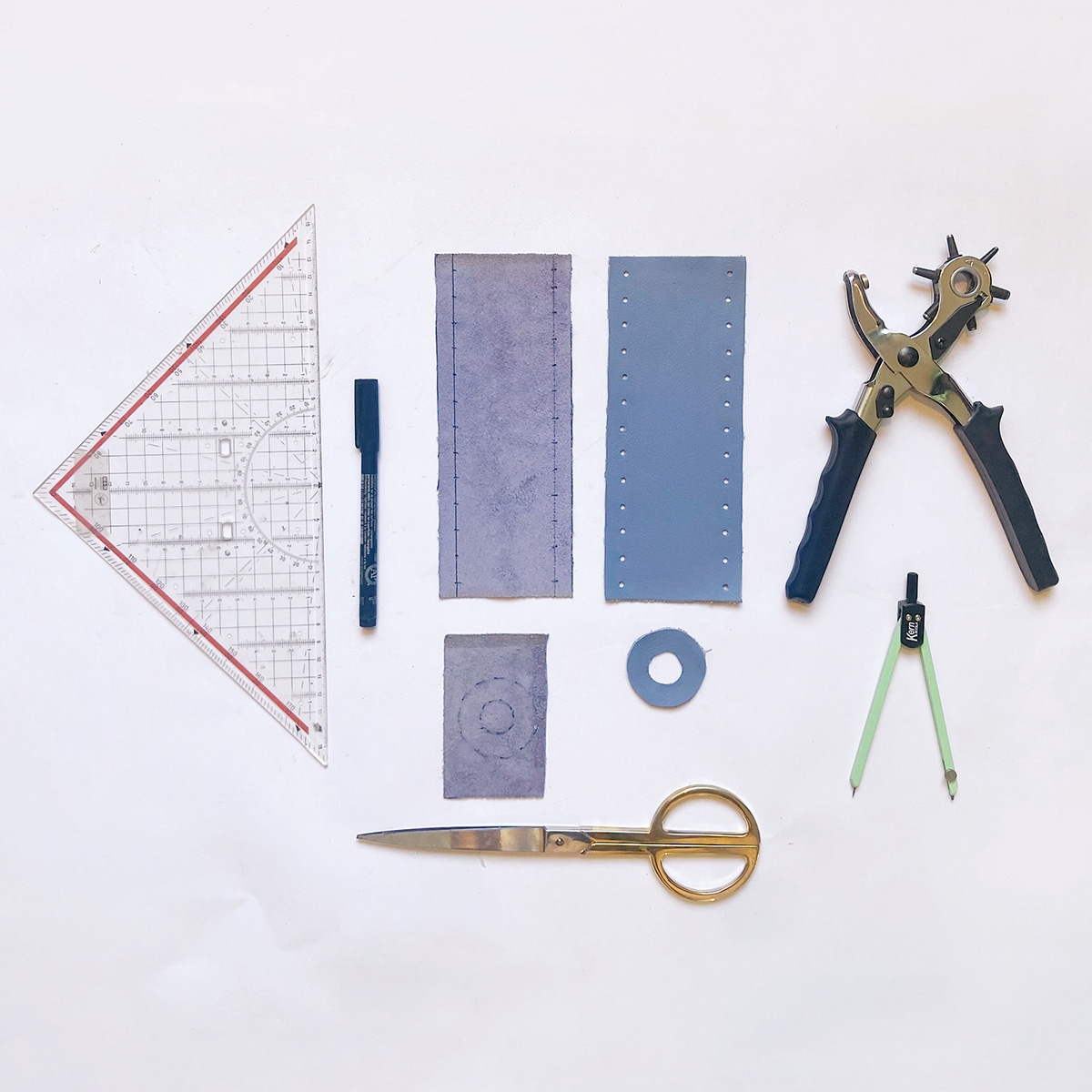 Akkuschrauber, Geodreieck, Zirkel, Schere oder Cutter, Lochzange oder Stanzeisen, Ahle, evtl. Schraubenzieher und Engländer