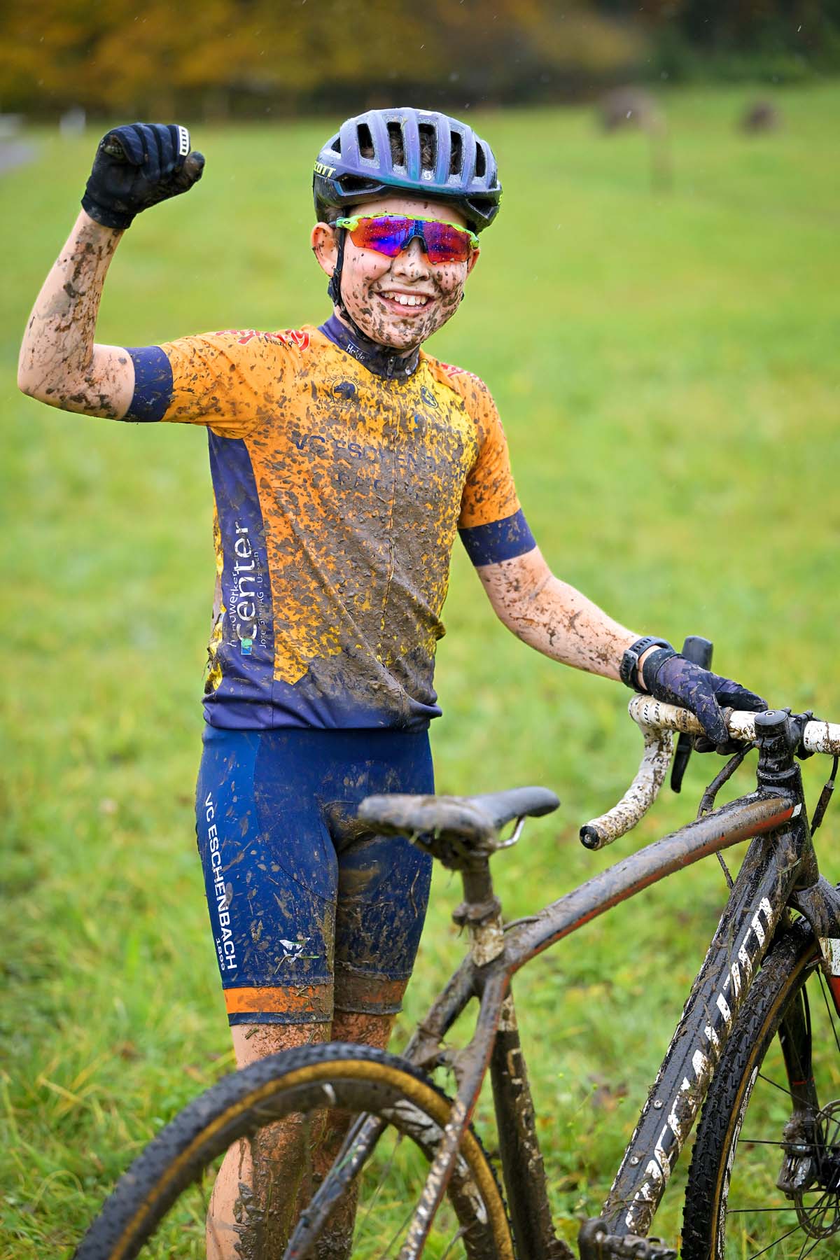 Nach dem Rennen erklärt mir eine U-13-Teilnehmerin, dass die heutigen Bedingungen mit dem steten Regen «eigentlich super» seien. «So bleibt der Schlamm flüssig», meint sie. Trocknender, klebriger Schlamm sei viel schlimmer, da sich die Laufräder dann kaum mehr drehten. Für dieses Problem steht auf dem Gelände eine Waschstation bereit, wo auch während des Rennens die Velos gereinigt werden können. Profis haben dort ihre Unterstützer und ein Ersatzvelo positioniert, um immerhin einige Kurbelumdrehungen matschfrei zu schaffen. Beim Velowaschen treffe ich einen Teilnehmer der U 15. Er erklärt mir stolz: «Am liebsten fahre ich auf den Wurzeln im Wald. Regen ist egal, ich fahre bei jedem Wetter.» Das glaube ich ihm sofort, als ich ihn freudestrahlend um die nächste Schlammkurve rutschen sehe.