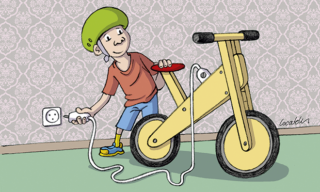 Seit ein paar Jahren gibt es bei uns die Elektrovelos. Die Mode scheint unaufhaltsam, wächst an zu einem kapitalen Phänomen in der Verkehrsgeschichte der Gegenwart und der Zukunft. Menschen, die sonst nicht Velo fahren würden, steigen jetzt aufs elektrisch wimmernde Zweirad, beleben auf der Fahrt wenigstens ein bisschen ihren Stoffwechsel, und das ist schon besser, als untätig im Auto-Sofa zu lümmeln.
