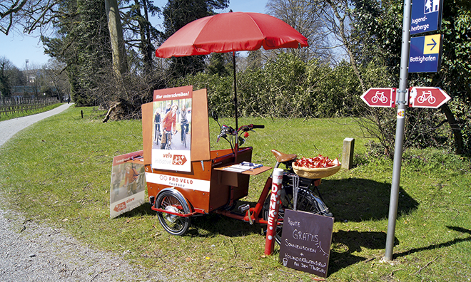 Als erster von allen Regionalverbänden hat Lenzburg sein Soll erfüllt. Daran habe es auch nie Zweifel gegeben, schildert Präsident Werner Christen im Gespräch mit Velojournal. «Gut funktioniert hat das Unterschriftensammeln an einem Samstag vor den zwei grossen Supermärkten.» Mit Plakat, roten Pro-Velo- T-Shirts und Unterschriftenbögen ausgerüstet, positionierten sich die Lenzburger vor den Eingängen. «Wir hatten viele positive Begegnungen. Besonders in einer Gemeinde wie Lenzburg, wo man sich kennt.» Kritische Rückmeldungen hätten vor allem Velofahrerinnen und -fahrer betroffen, die auf Trottoirs oder durch Fussgängerzonen fahren. Eine Kritik, die sich mit dem Ziel der Veloinitiative gut entkräften lässt, will sie doch die Infrastruktur verbessern. «Zu viel argumentieren nützt aber nichts. Besser diejenigen Personen abholen, die dem Velo positiv gegenüberstehen», so Werner Christens Ratschlag. Obwohl der kleine Aargauer Regionalverband seine Vorgabe bereits erfüllt hat, wird die Unterschriftensammlung weitergehen. Im August zelebrieren die Lenzburger in der Altstadt die «Velolust». Was ursprünglich als Hauptevent zur Unterschriftensammlung geplant war, wird nun zur Kür. Zwei lokale Radballvereine werden ihre Velo- und Ballbeherrschung vorführen. Dazu lädt Pro Velo die Passanten ein, das Velo aus einem anderen Blickwinkel zu erleben und neue Formen des Radelns kennen zu lernen.