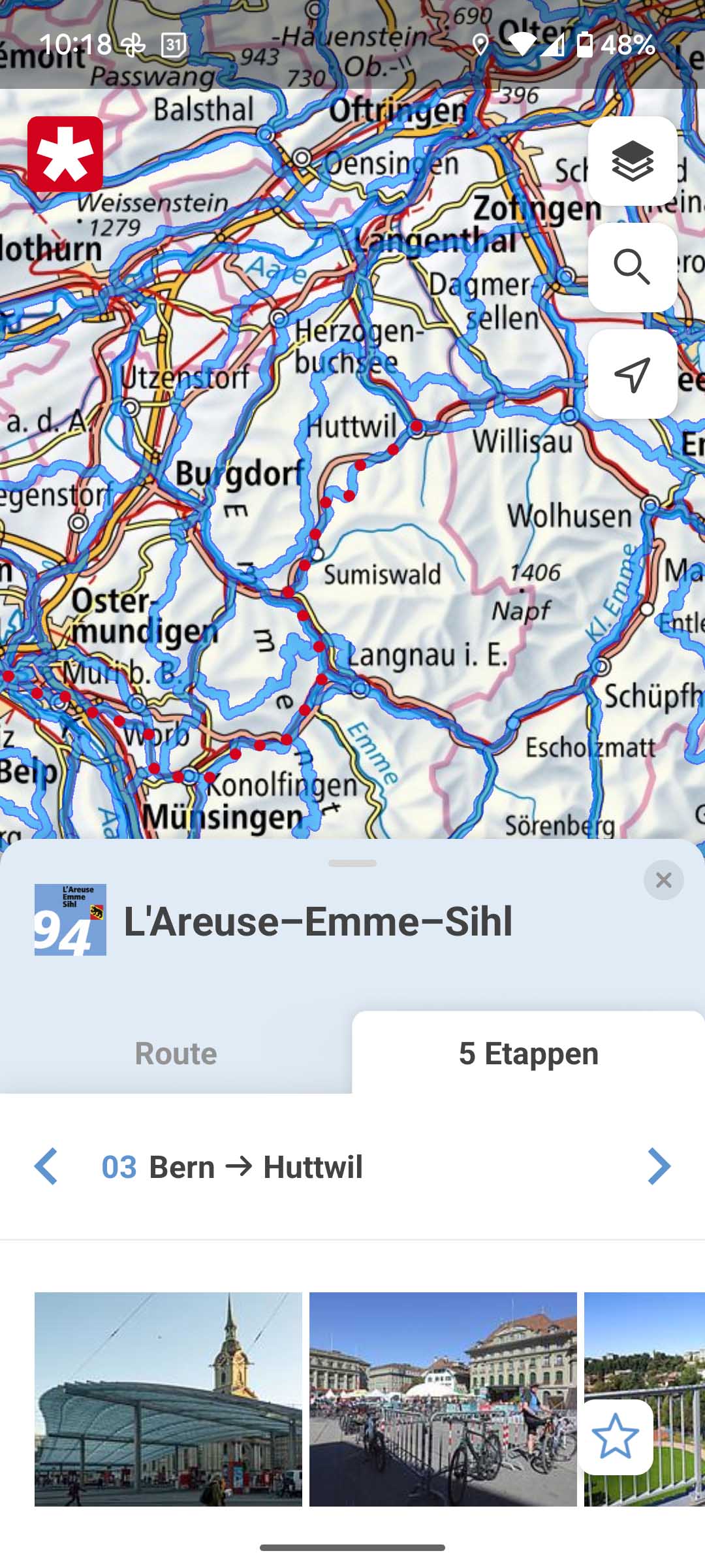 • Die App nutzt detailliertes Swisstopo-Kartenmaterial und bildet das offizielle, schweizweit nummerierte Velo- und Mountainbike-Routennetz ab.