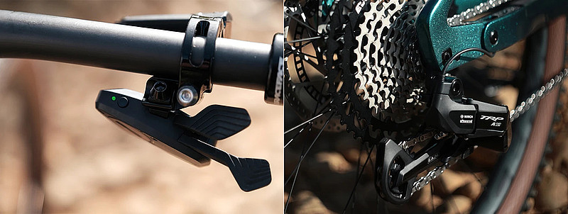 Die zu Tektro gehörende Marke TRP hat an der Eurobike zwei neue elektronische und kabellose Schaltungen präsentiert. Einmal für Rennvelos und Gravelbikes und einmal für E-Mountainbikes mit Bosch-Motoren.