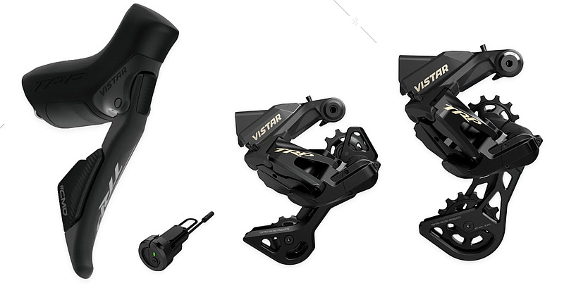 Denn in Frankfurt lüftete TRP den Schleier über zwei neue, elektronische Schaltungen, die beide ohne Umwerfer auskommen. Mit nur einem Kettenblatt und 12-Gang-Kassetten ist die «Vistar» für Rennvelos und Gravelbikes entwickelt worden. Dabei werden die Schaltbefehle per Bluetooth-Protokoll ans Schaltwerk gesendet, die Gangwechsel erfolgen ebenso rasch und zuverlässig wie geschmeidig.