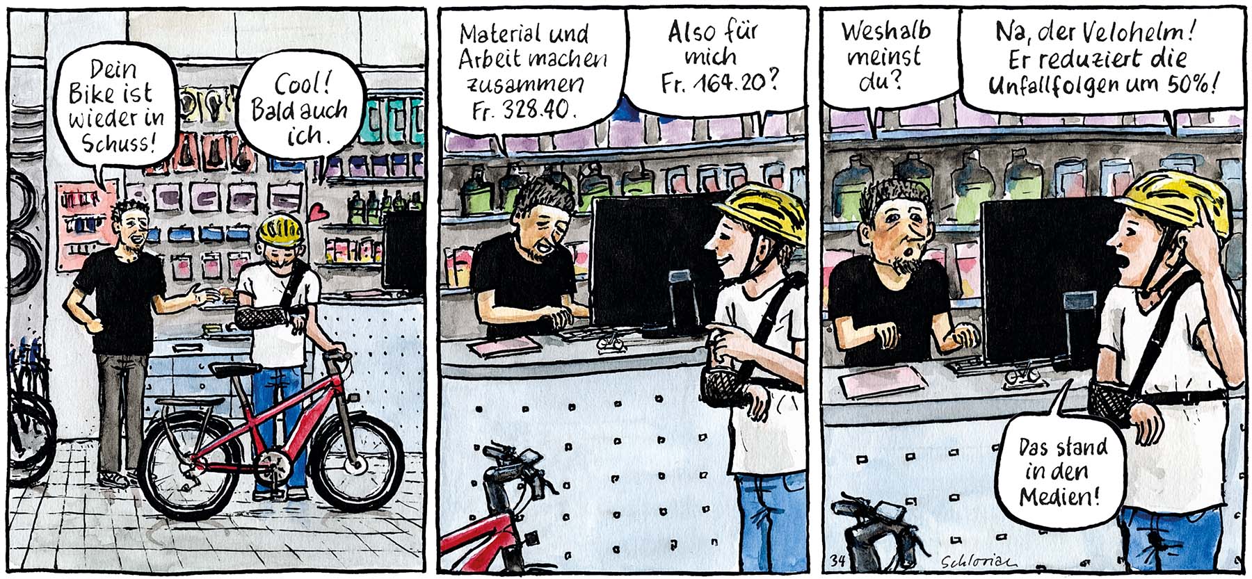 Ein Velohelm reduziert Unfallfolgen um die Hälfte. Dank Schlorian wissen wir nun, dass dies aber nur die halbe Wahrheit ist.
