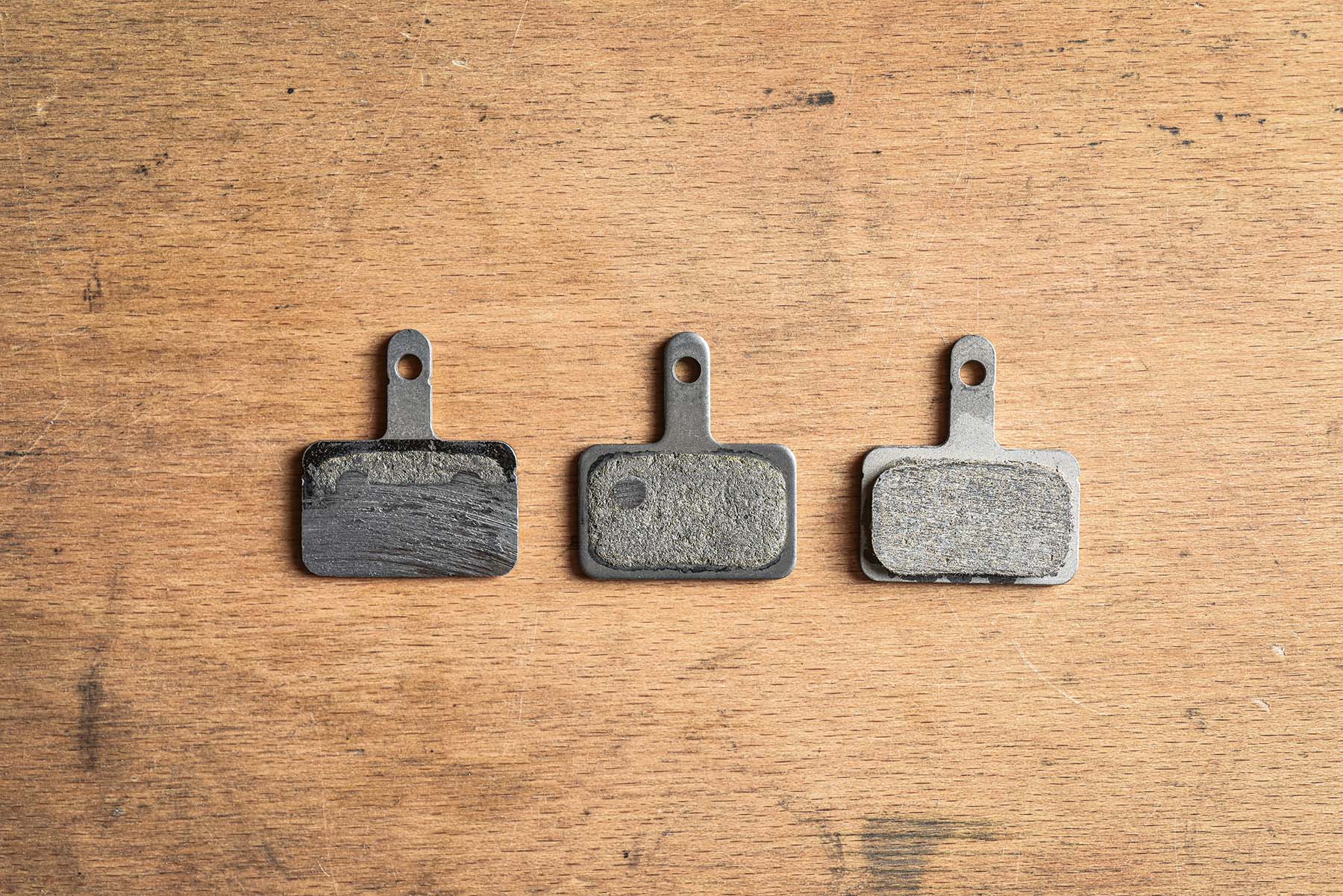 Bremsbeläge von Scheibenbremsen bestehen aus einer Trägerplatte und dem eigentlichen Bremsbelag. Dieser ist im Neuzustand zirka 2 mm dick und kann bis auf 0,5 mm abgefahren werden.
