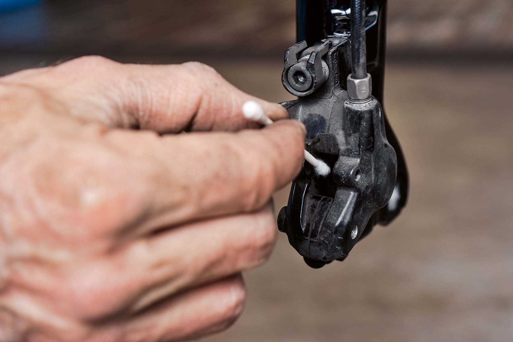 Hier zeigen wir, wie man selbst überprüfen kann, ob mit der Bremse alles in Ordnung ist. (Fotos: Marcel Kaufmann)