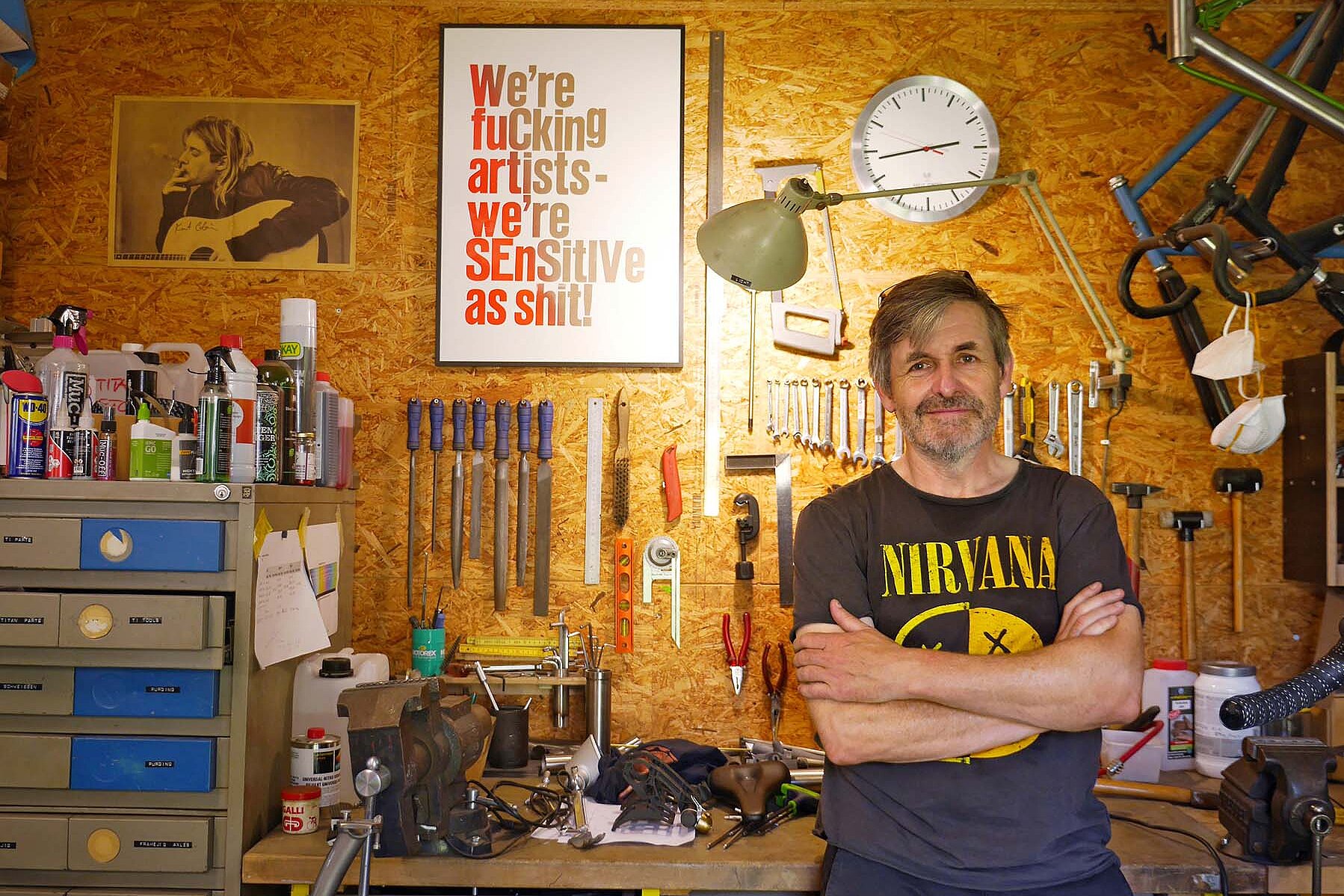 Passionierter Velofahrer, Nerd und Rahmenbauer: Stefan Süess hat sich dem Zweirad verschrieben und baut Titanrahmen in Handarbeit. Beim Besuch in seiner Werkstatt zeigt er «seine kleinen Freuden».