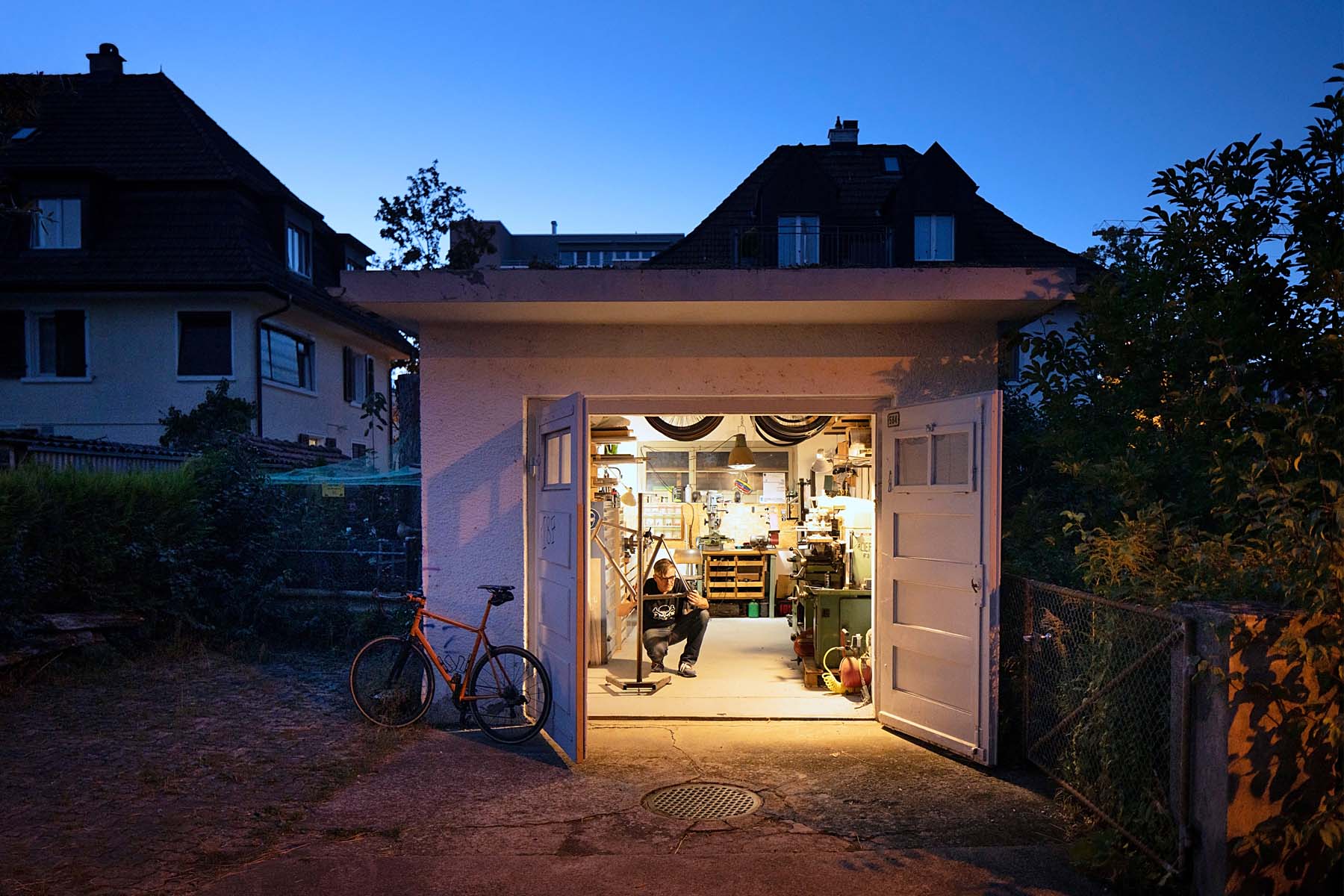 Der rockige Sound erfüllt tatsächlich die kleine, aber feine Werkstatt in einem gemütlichen Garten in Zürich Altstetten. «Umechlüttere» ist aber kaum der richtige Begriff für die hochpräzise Handarbeit von Süess. Schliesslich ist der Zürcher nicht nur erfahrener Rahmenbauer, sondern auch «Velo-Nerd», wie er selbst sagt. Er interessiert sich nicht nur für den Rahmen des Zweirads, sondern auch für Entwicklungen in der Velotechnik und kleine Details seiner Werkstücke. Spätestens, als er von den 1,2-Millimeter-Schrauben erzählt, mit denen der Headbadge am Steuerrohr befestigt wird, glaubt man ihm. Derzeit beschäftigt er sich mit dem Verfahren des 3-D-Drucks. Erste Ausfallenden hat er bereits mit diesem Verfahren herstellen lassen, wodurch er auch diese Titanteile nach eigenem Design gestalten kann. Wo immer möglich, beschafft er solche Einzelteile, wie auch das Rohmaterial, in Europa. Dies erfordert oft Mehraufwand und höhere Investitionen, was sich aber bei seinen Einzelstücken zu lohnen scheint.