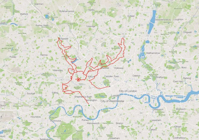 Der einundfünfzigjährige Anthony Hoyte hat ein sehr spezielles Hobby: Mit Strava plant er komplizierte Routen durch die britische Hauptstadt, die am Ende Zeichnungen ergeben. Kürzlich entstand so die Zeichnung eines Rentiers.