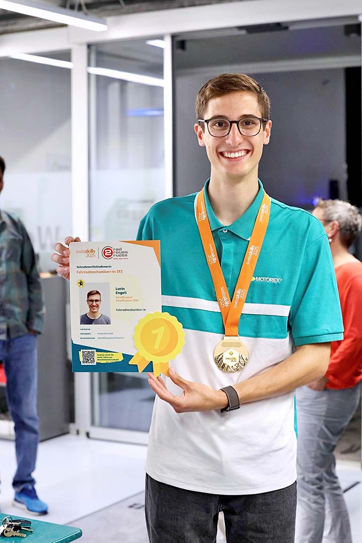 An den Berufsmeisterschaften Swiss Skills im September 2025 setzte sich der Lehrling von Randen Bike GmbH gegenüber seinen Konkurrenten durch. In insgesamt acht praktischen Prüfungen stellte Lorin Engeli sein Können unter Beweis.