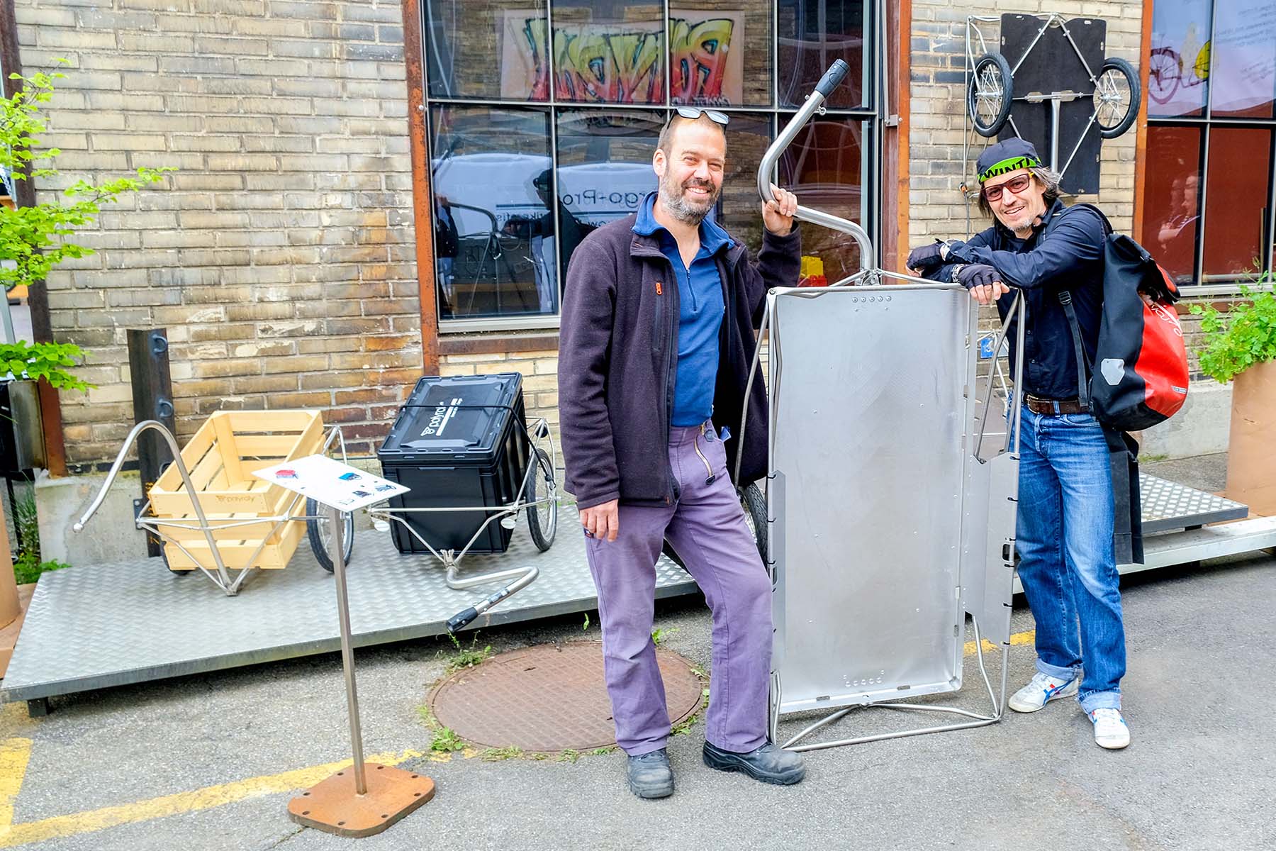 Weil Re Meili vor über 30 Jahren als Industriedesignstudent in London keinen passenden Veloanhänger fand, baute er kurzerhand selbst einen. Jahre später tat er sich mit seinem ehemaligen Studienkollegen Lorenz Grimmer zusammen. In dessen Schlosserei wurde ab 2011 die Neuinterpretation des Anhängers entwickelt. Diesmal aus dünnwandigen Chromstahlrohren, deren Enden flach gepresst und mittels spezieller Federstahl-Drahttechnik verschraubt werden. Die Anhänger von Polyroly werden seit 2014 von Hand im Sulzerareal in Winterthur gefertigt. In 12 Varianten erhältlich, nehmen es die Veloanhänger mit bis zu 350 kg Traglast auf.