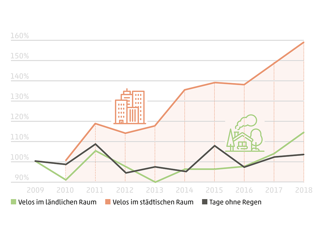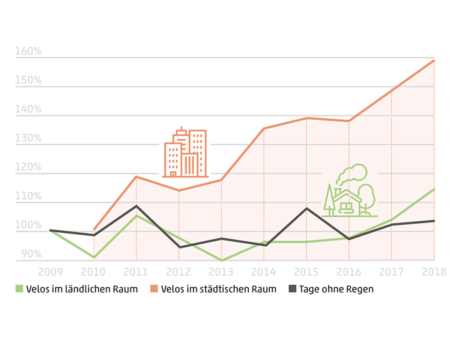 Die Unterscheidung von städtischem und ländlichem Raum sei wichtig, heisst es weiter im Bericht. Denn im städtischen Raum überwiege der Alltagsverkehr. Velos würden vorwiegend für den Arbeits- oder Schulweg und zum Einkaufen verwendet. Im ländlichen Raum stehe der Freizeitverkehr im Vordergrund.