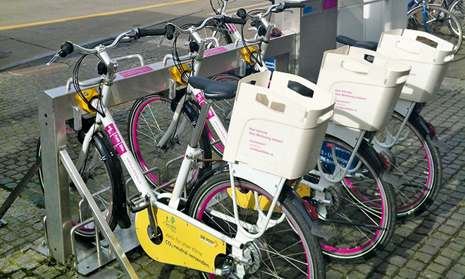 «PubliBike», das gemeinsame Angebot von PostAuto, SBB und Rent a Bike, will die Mobilitätskette mit Leihvelos ergänzen. So wie an den Bahnhöfen Mobility-Autos stehen, sollen bald auch mehr «PubliBike»-Velos greifbar sein.
