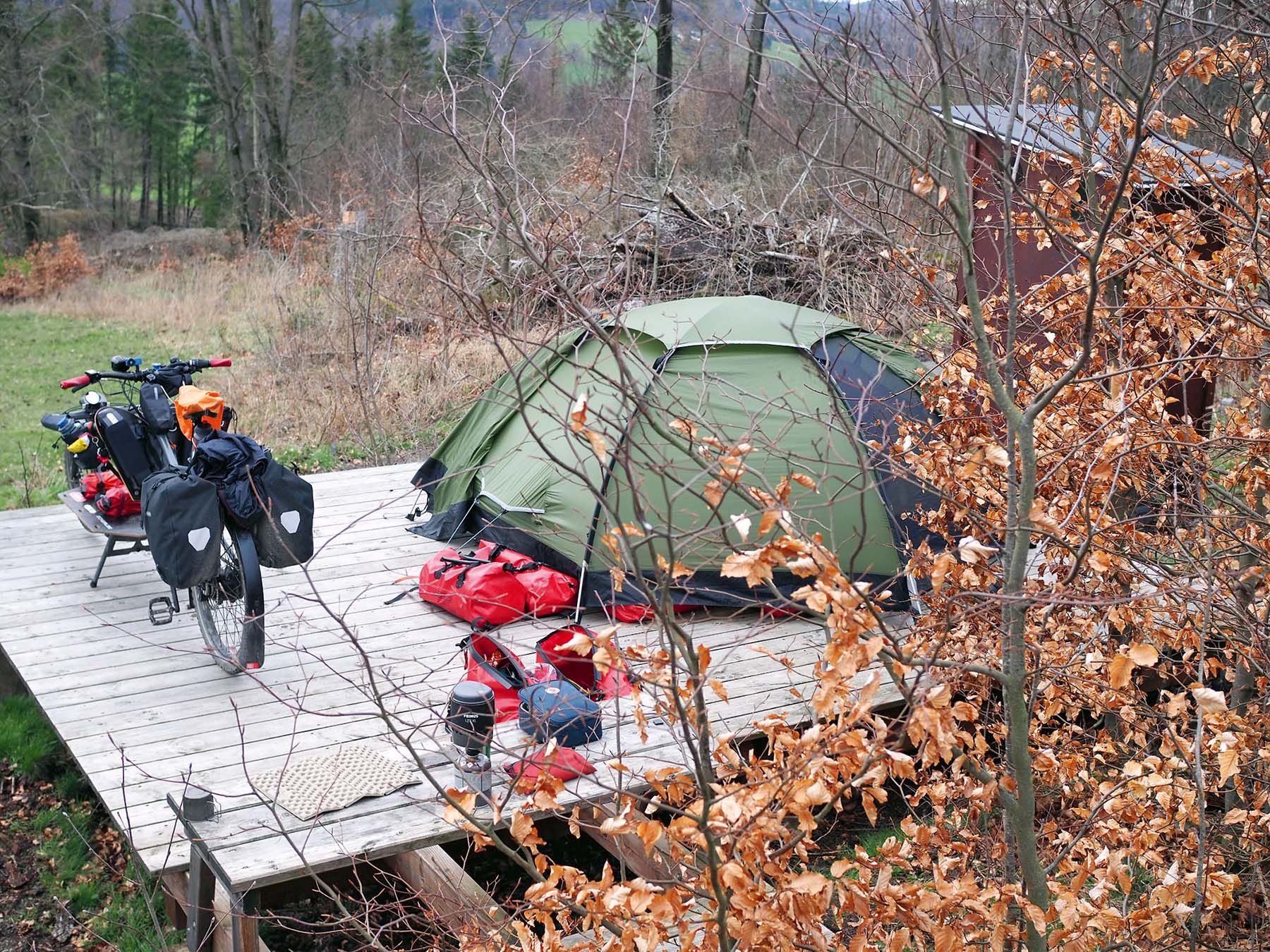 Wenig später wechselte ich vom Tipi in ein Kuppelzelt, das mir nicht nur acht Kilogramm Gewicht, sondern vor allem gut 20 Minuten im Transfer spart.