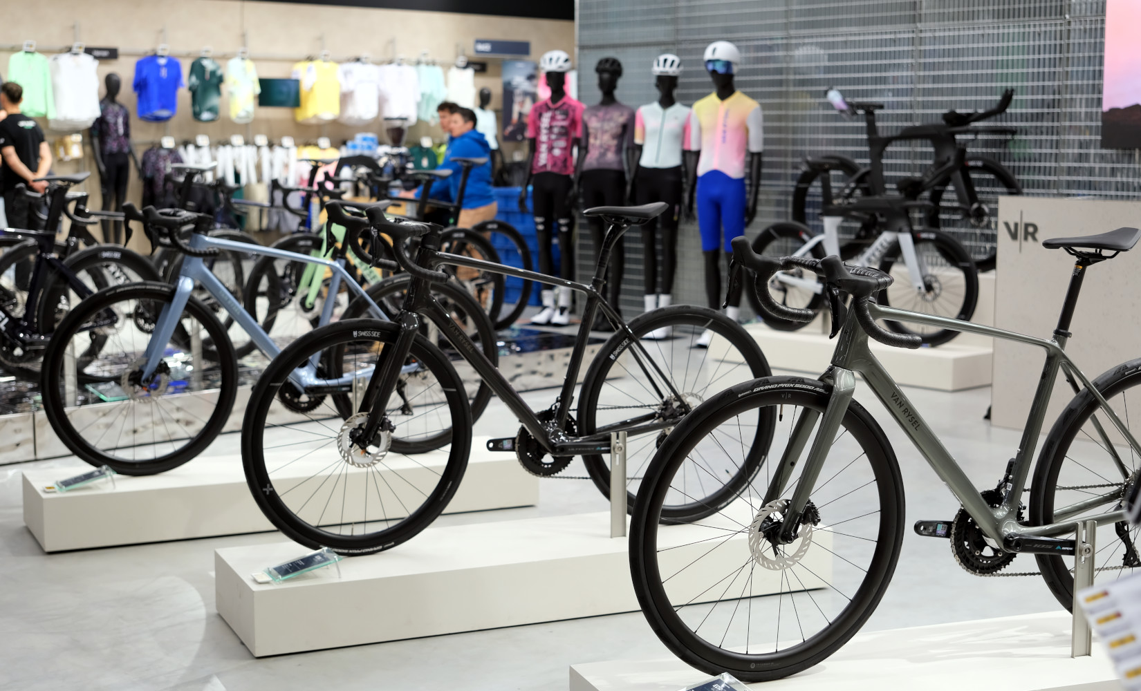 Auf 350 Quadratmetern im dritten Untergeschoss wird das gesamte Sortiment der Marke inszeniert: von den Aero-Rennern «RCR-F» und Triathlon-Boliden über Endurance-Modelle bis hin zum umfangreichen Gravel-Line-up.