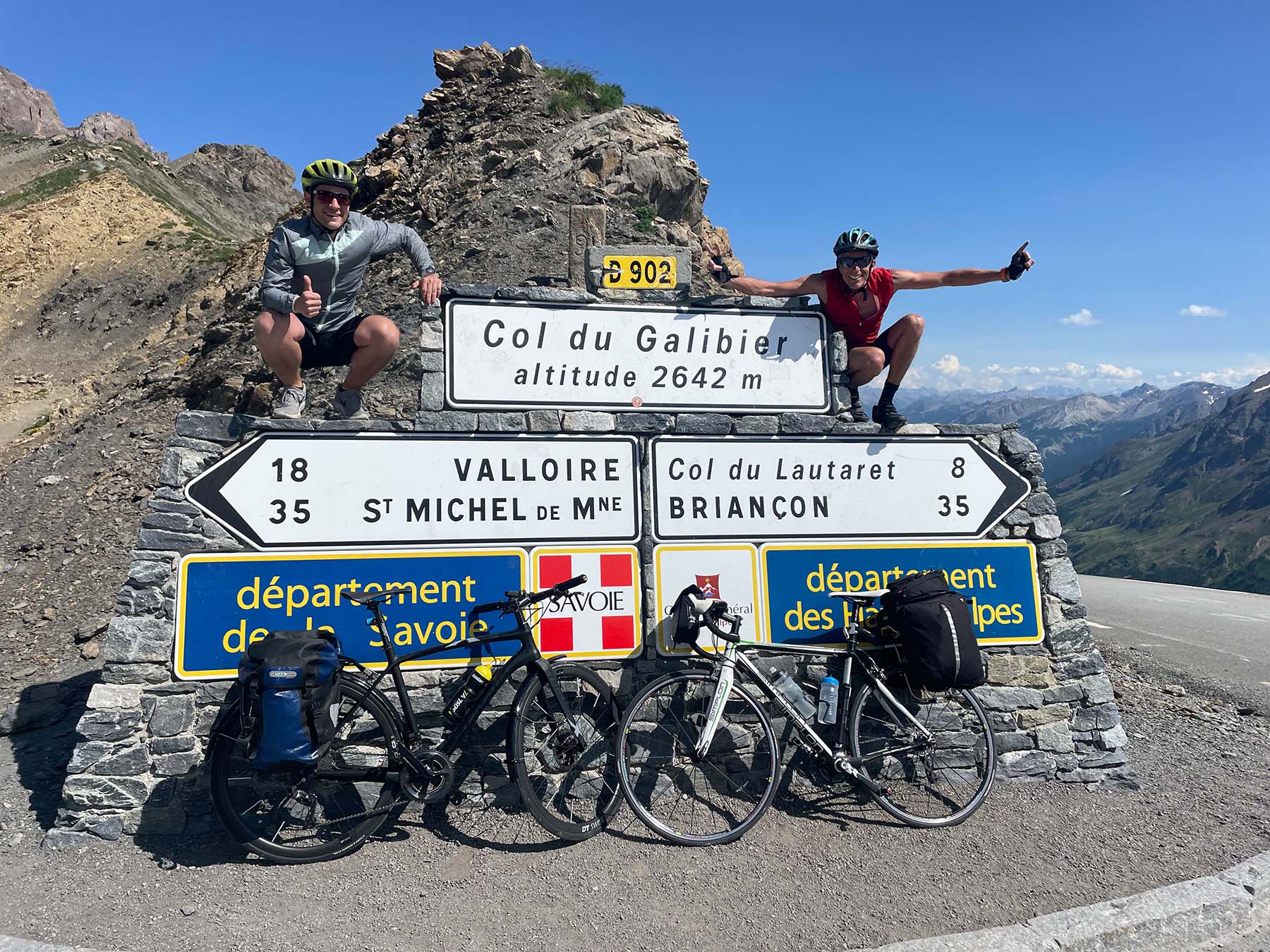 Der braune Wegweiser mit der Aufschrift «Route des Grandes Alpes» lässt keine Zweifel offen: Es geht den Berg hoch. Erstaunlich problemlos fliegen wir die Spitzkehren hoch und finden es zuoberst schade, schon da zu sein. War es der neuerliche Rückenwind, oder wollten wir uns gegenüber denn anderen Rennvelofahrenden einfach keine Blösse geben?