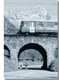 Allgemein:Die familienfreundliche Rhein-Route ist von Andermatt über Chur, St.Margrethen und Schaffhausen bis Basel 424 Kilometer lang. Davon sind 80 km ungeteert. 1550 Höhenmeter. Der obere Teil bis zum Bodensee ist landschaftlich abwechslungsreicher, die Route (auto)verkehrsärmer. Die ganze Strecke ist ausgeschildert und vom öffentlichen Verkehr gut erschlossen.