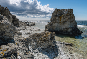 Wer sich für Bergman interessiert, heftet sich an seine Spuren. Wir lassen das ihm gewidmete Museum links liegen und pedalen vom Zeltplatz in Ekeviken in Tagesrunden durch eine Inselwelt, die vielfältiger nicht sein könnte. Ganz im Norden etwa versteckt sich ein Sandstrand, wie man ihn vom Strässchen aus, das durch den Wald um den Inselarm führt, nicht erwarten würde. Ein Hauch von Karibik an der Ostsee, meterhohe Dünen, stille Weite. Im Westen dann führt die Strasse hinaus zum Inselfinger Langhammars durch eine menschenleere Landschaft. Die Sonne hat sie braun gebrannt, hunderte Meter lange Steinmauern teilen die alten Felder ein. Die Küste, an der skurrile Kalksteinsäulen (Raukar) die Fantasie anregen, reicht weit ins Land hinein, der Wind streicht über das karge Flach, an das sich geblumtes Grün klammert. In Helgumannen erzählt eine Handvoll rotbrauner Fischerhütten von den Bauern, die hier einst im Frühling und im Herbst wochenlang lebten und ihren Fang vor Ort im Rauch haltbar machten.