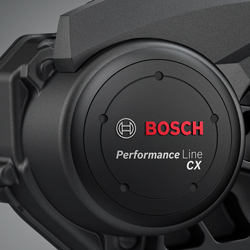 Einsatz hört auf den Namen Performance Line CX. Zum neuen Motor bietet Bosch nun ein kleines 14-Zähne-Kettenblatt. Zusammen mit der SRAM 10-42-Zähne-Kassette ergibt sich eine angemessene Übersetzungs-Bandbreite, die gemäss Bosch den Einsatz von einem Zweifachkettenblatt unnötig macht. Der Motor wurde zudem in der Aussenform optimiert, insbesondere um den Konstrukteuren bei Fullys mehr Freiheiten bei der Platzierung des Drehpunktes zu geben und mehr Bodenfreiheit zu erreichen. Der Motor wurde auch 200 Gramm leichter. Er passt auf die bisherigen Aufnahmen. Ist ein Rahmen allerdings auf die "CX"-Form optimiert, ist er nicht mehr mit den "Performance-" und "Active-Line"-Motoren kompatibel. Der 500 Wh-Akku